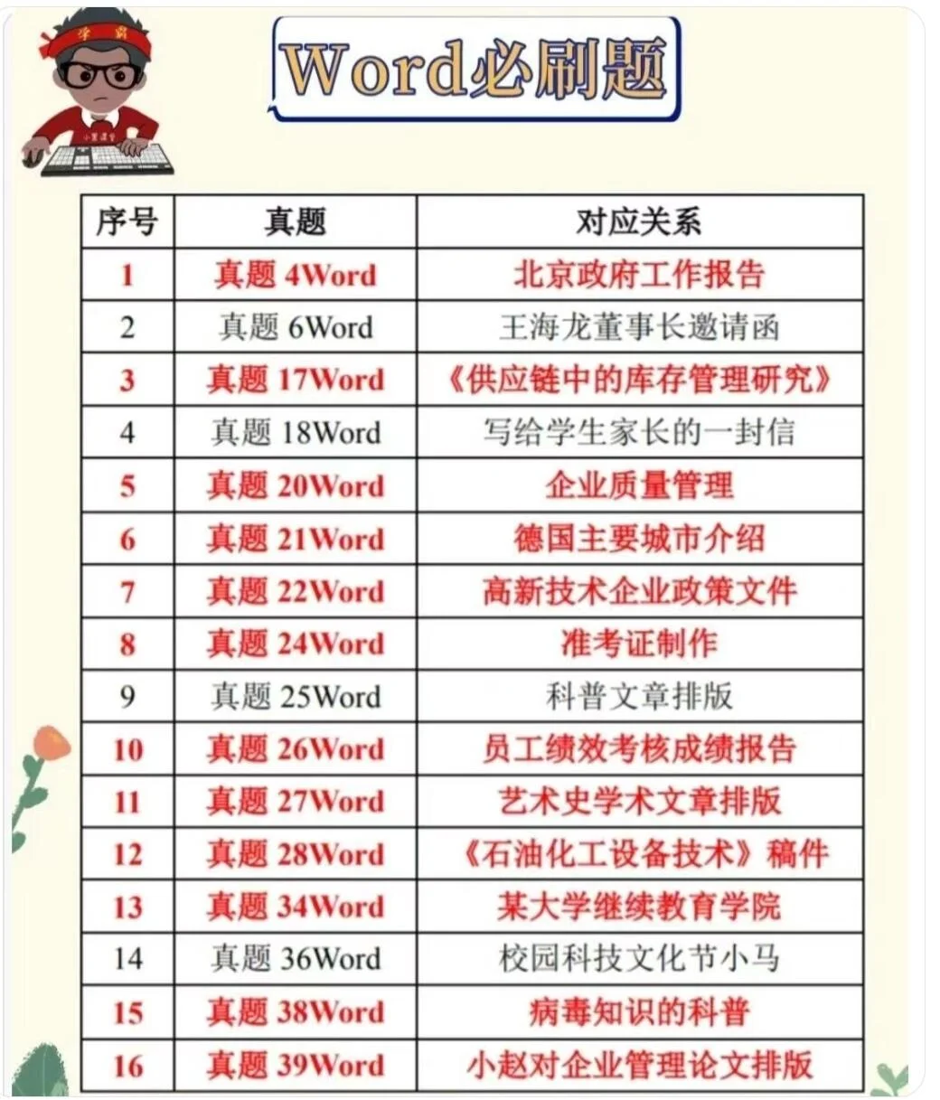 5️⃣题型:选择题20分、 Word 30分、 Excel 30分、 PowerPoint 20分