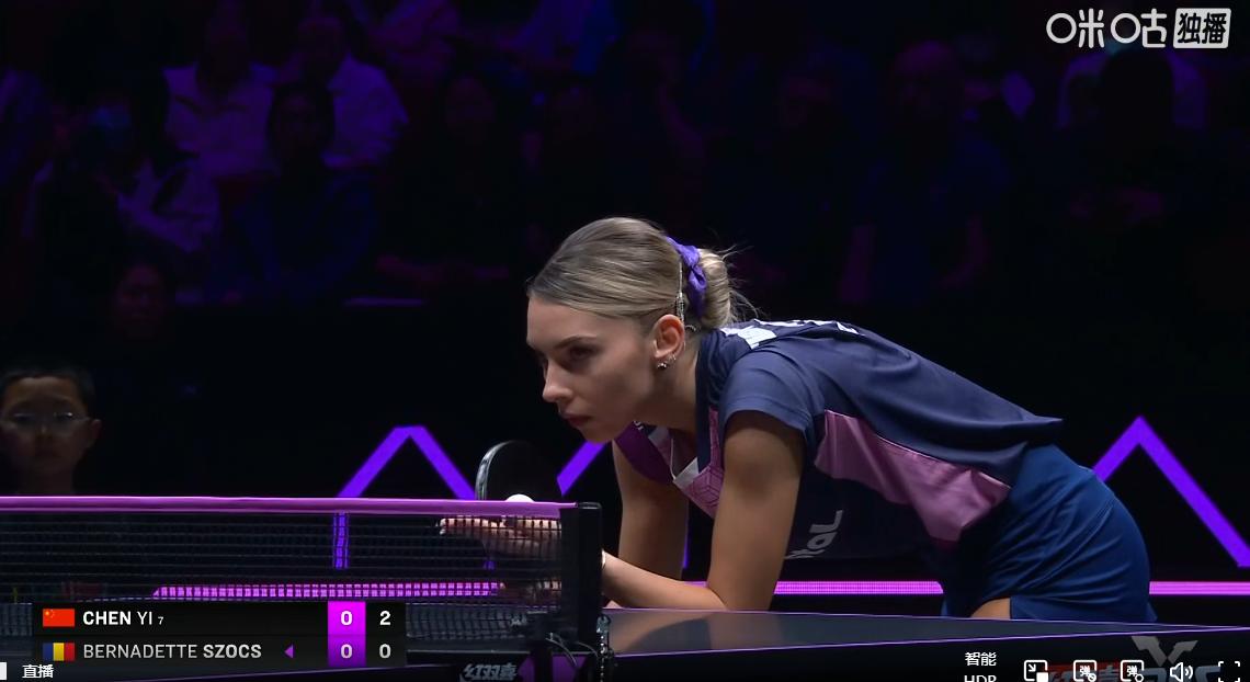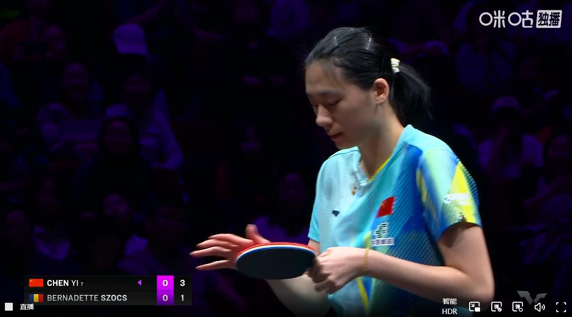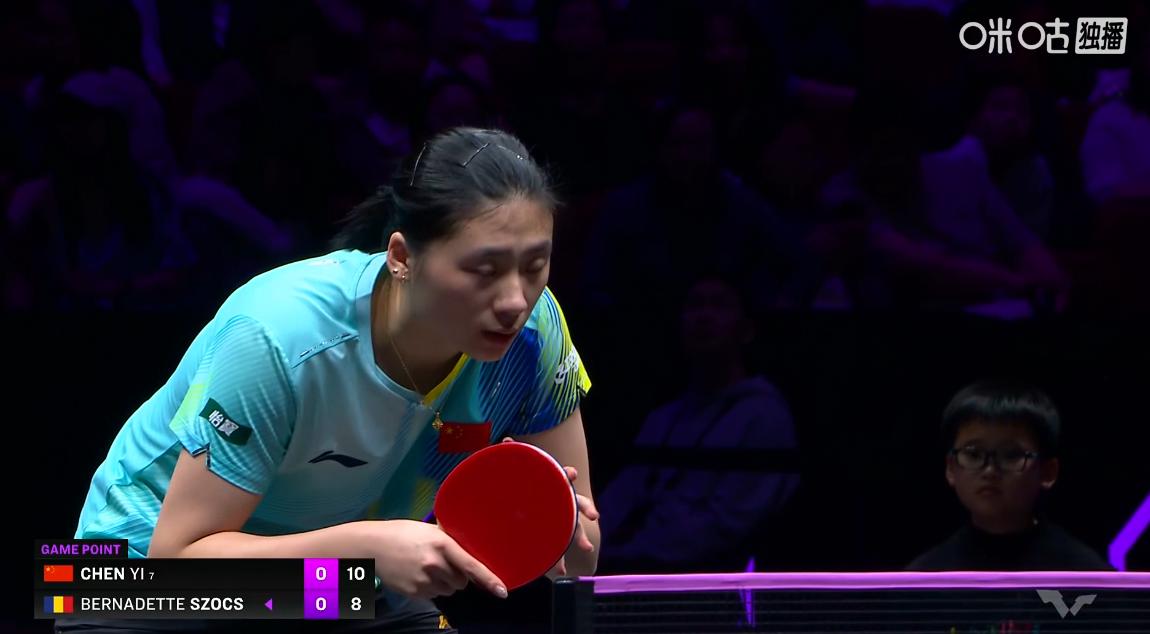 曼昱爆冷出局后,马琳就成了陈熠的场外指导, 看得出来国乒对于陈熠是给予了厚望, 第二轮的对手是有着“妖怪”之称的罗马尼亚球员斯佐科斯, 周雨也是一再强调, 陈熠要注意斯佐科斯的变化, 开局陈熠打的很稳,取得3:0领先, 今天陈熠的加旋转质量很高, 连拿2分,将比分拉开到5:1, 斯佐科斯也是加了反手旋转, 在相持对拉上陈熠还是占绝对优势, 8:2,陈熠越打越顺, 斯佐科斯侧身拉旋转, 陈熠接发球出现失误,8:4, 陈熠还是要打简单,发底线长球, 9:5,陈熠有点着急, 斯佐科斯利用节奏变化,将比分追到9:8, 斯佐科斯发抢失误, 陈熠连拿2分,11:8,陈熠先下一城