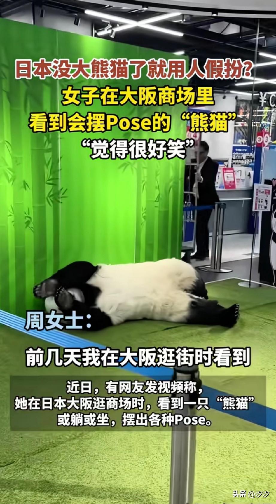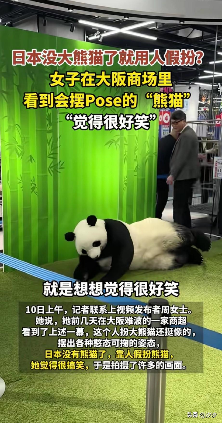 有女子在大阪逛街, 居然发现一商场里面有只熊猫, 这只熊猫憨态可掬, 简直和真的一模一样, 她觉得很有趣,就把这一幕拍了下来, 大家都知道日本没有熊猫了, 如今商场出现了这只,正是有人假扮, 她还会做各种动作摆pos, 有时候也会撒娇,摆烂, 不过演的和真的很像, 还吸引了很多小孩子拍照, 日本人还真是别出心裁, 想法总比困难多, 大家觉得这个日本人装扮的熊猫好玩吗? 大熊猫 人类大熊猫 外国大熊猫 东京大熊猫