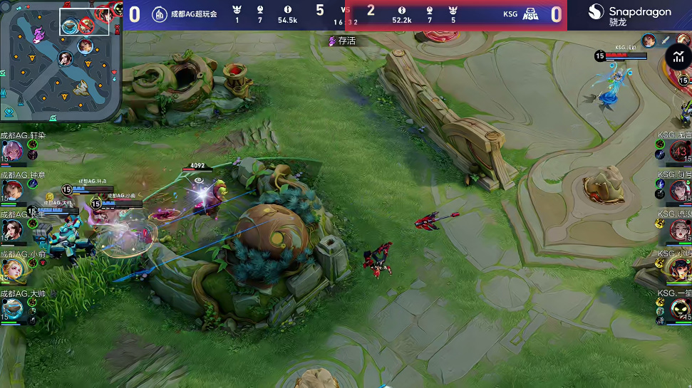 影在上路卡线被狂铁留下,KSG四人包上拿下一血