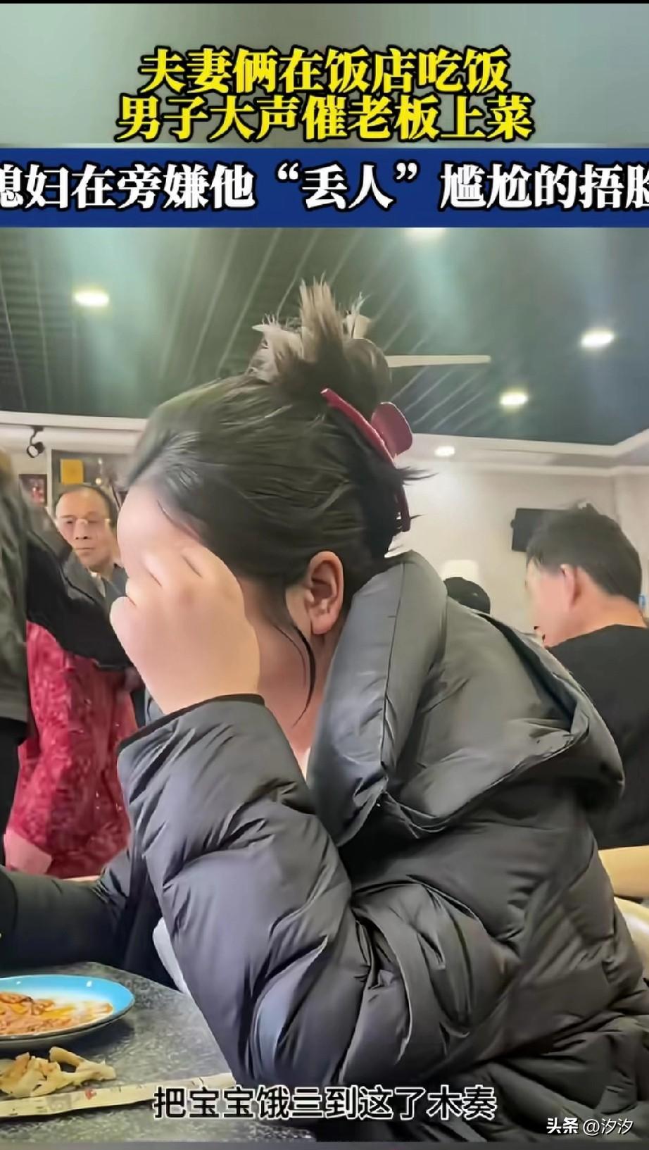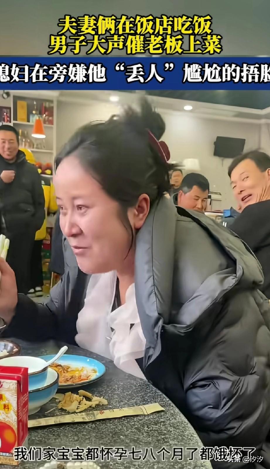 夫妻俩人在饭店吃饭, 刚点完菜之后, 男子就催促店家赶紧上菜, 还大声喧哗, 说自己的老婆怀孕七八个月, 快点上菜吧, 这是要把自己老婆饿死在这儿吗? 他的老婆听到他当着这么多人的面说这话,拉了拉他的衣角, 让他不要说话了, 感觉非常的丢人, 结果她的丈夫不仅不嫌丢人, 反而喧闹的更热烈了, 旁边的大哥听到都逗笑了, 这样的夫妻真的很少见, 老公脸皮真厚, 天天公开场合喊老婆宝宝, 把他媳妇儿都弄害羞了, 每次出门都不愿意和她一起, 有这样的老公也太逗了! 大家看过两个人的其他作品吗? 夫妻相处,最怕的是什么