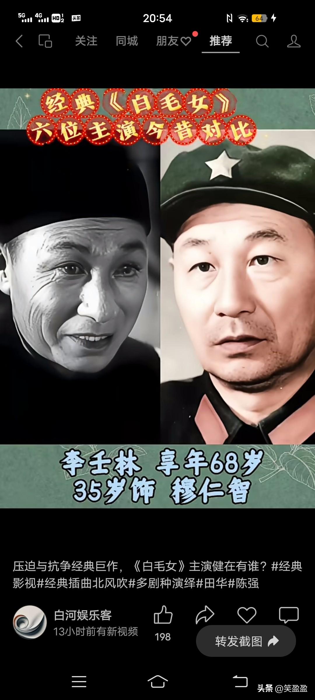 经典《白毛女》 6位主演今昔对比 你更喜欢哪位?