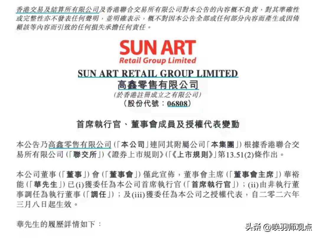 大润发CEO失联超一个月后被免:那个签发了“廉洁是生命线”的人,自己先越了线 2026年3月8日,大润发母公司高鑫零售公告:CEO李卫平因失联超一个月、长期未请假未履职,被免除所有核心职务,由董事会主席华裕能零薪接任。 时间线: 李卫平2025年12月1日入职,年薪336万,被寄予厚望推动三年转型。今年初她签发内部信强调“廉洁自律是公司生命线”。2月4日公司公告“暂时无法取得联系”,3月8日正式免职。 反腐背景: 德弘资本入主后掀起反腐风暴,2025年11月大润发华东营运负责人管明武因受贿700余万被批捕。 业绩困境: 2026财年上半年营收305亿,同比减12.12%,净亏1.23亿。200家门店调改计划悬而未决。 唤羽师小结: “廉洁是生命线”不是口号,是底线。喊口号的人可能先倒下,但守住底线的人,才能走远。大润发商业广场 大润发新春礼盒 大润发闭店潮 五一来大润发 大润发国际影城 大润发CEO 大润世纪发超市 大润发选址 江苏响水大润发 大润发钻孔 大润发铜陵 张江大润发 鼓楼大润发 大润区