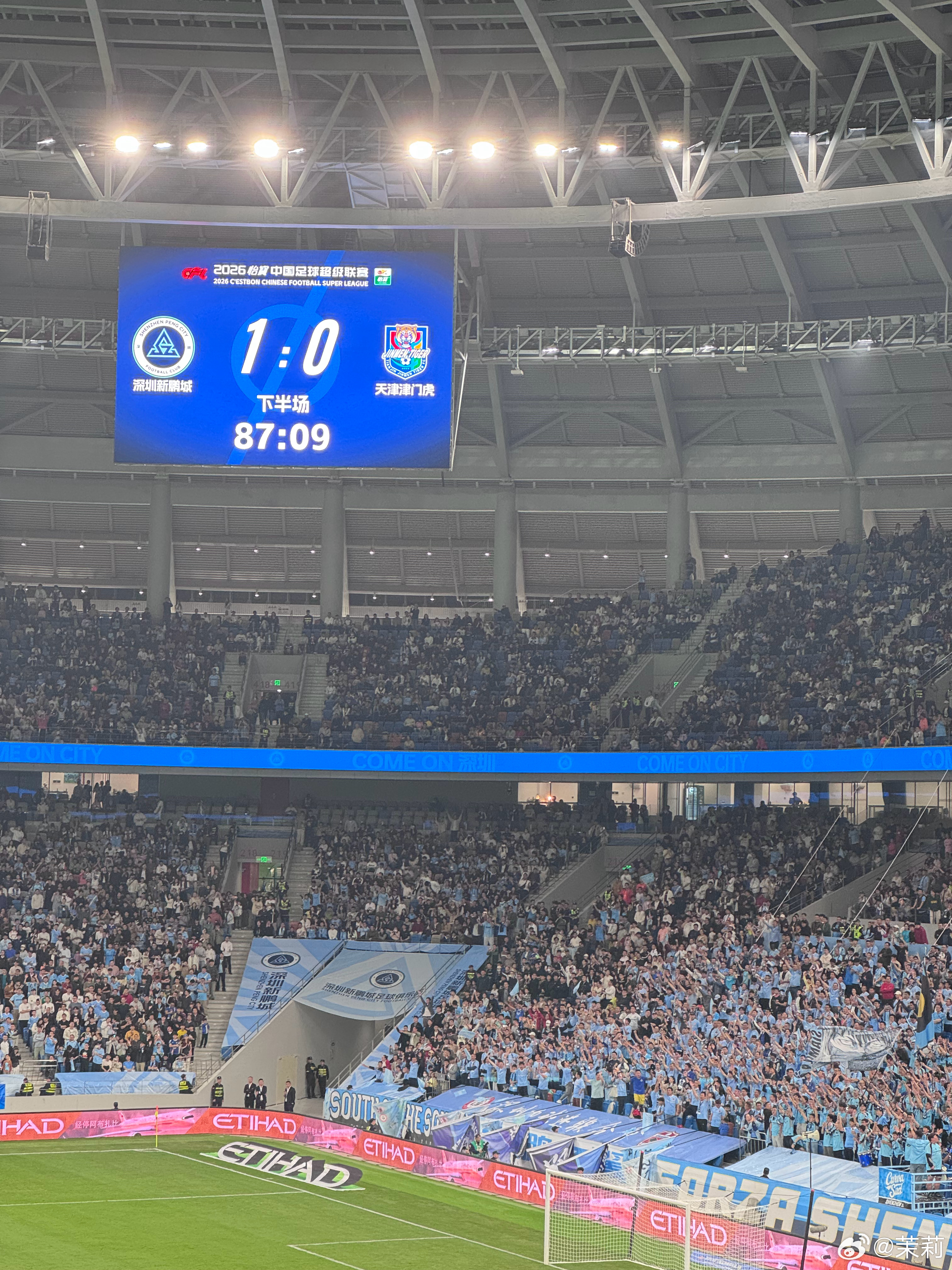 真是煎熬了87分钟,深圳新鹏城队长韦斯利进球!!!深圳新鹏城1-0领先天津津门虎!深圳新鹏城vs天津津门虎我的主队我的城中超联赛 深圳·深圳市体育中心
