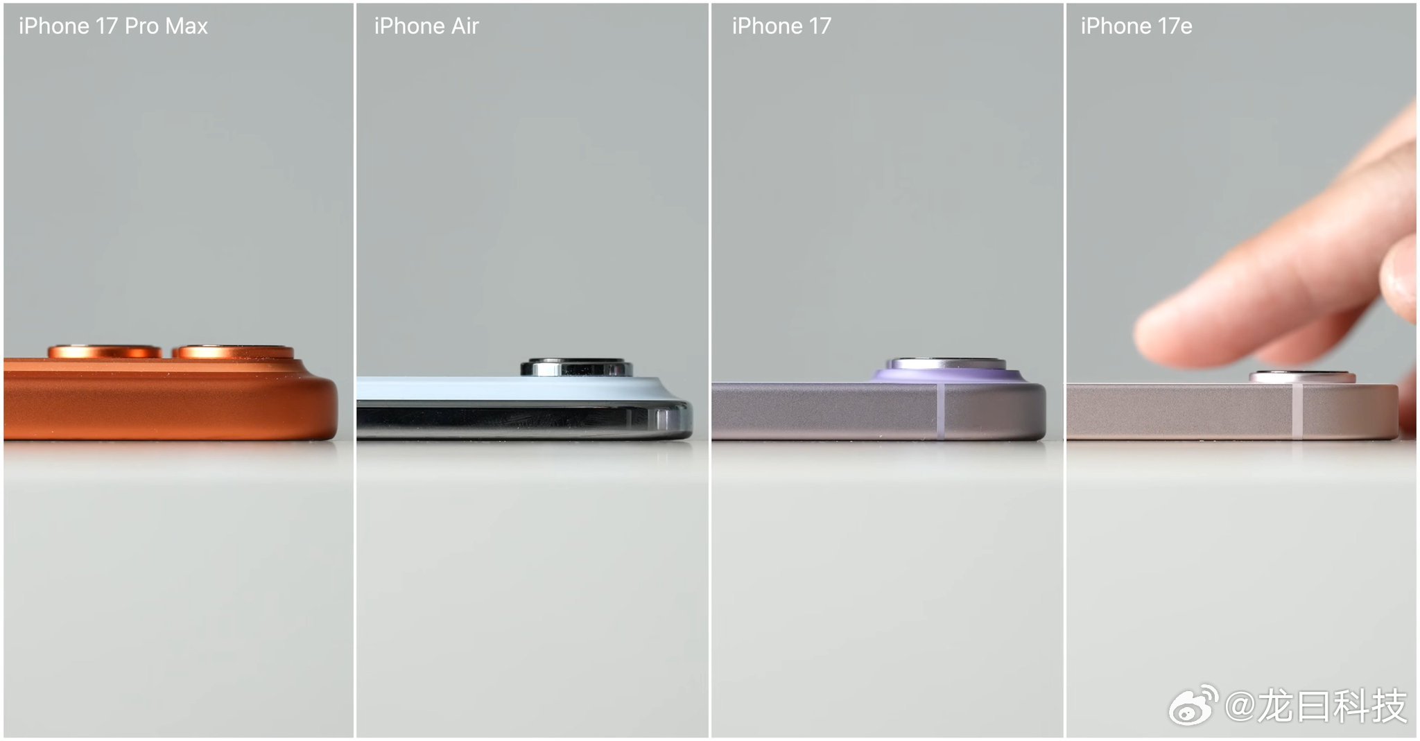 大家看看iPhone 17 系列的重量和厚度对比,iPhone 17 Air 是绝对的轻薄王者,只有5.64mm厚、165克重;iPhone 17e 厚度7.8mm、169克,接近最轻,尺寸也最小巧(6.1英寸屏);iPhone 17 标准版厚度7.95mm、177克,尺寸稍大(6.3英寸),平衡得最舒服日常用;iPhone 17 Pro Max 厚8.75mm但重量直冲233克,大屏大电池带来的负担最明显。总的来说,Air主打极致薄轻梦幻手感,17e和17更亲民实用,Pro系列则为性能续航妥协了点便携。你最想避开哪种“重”?