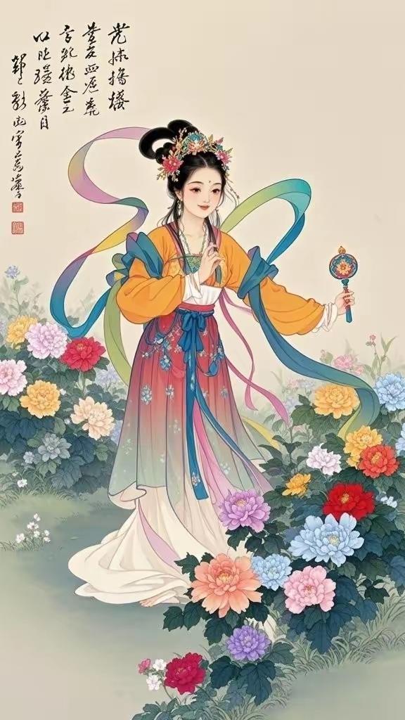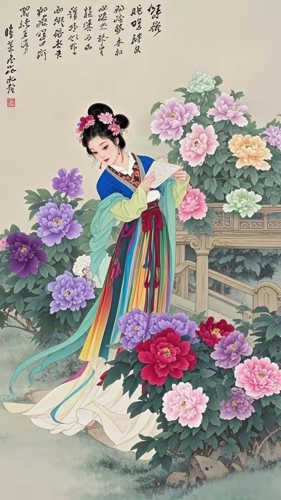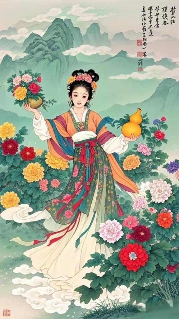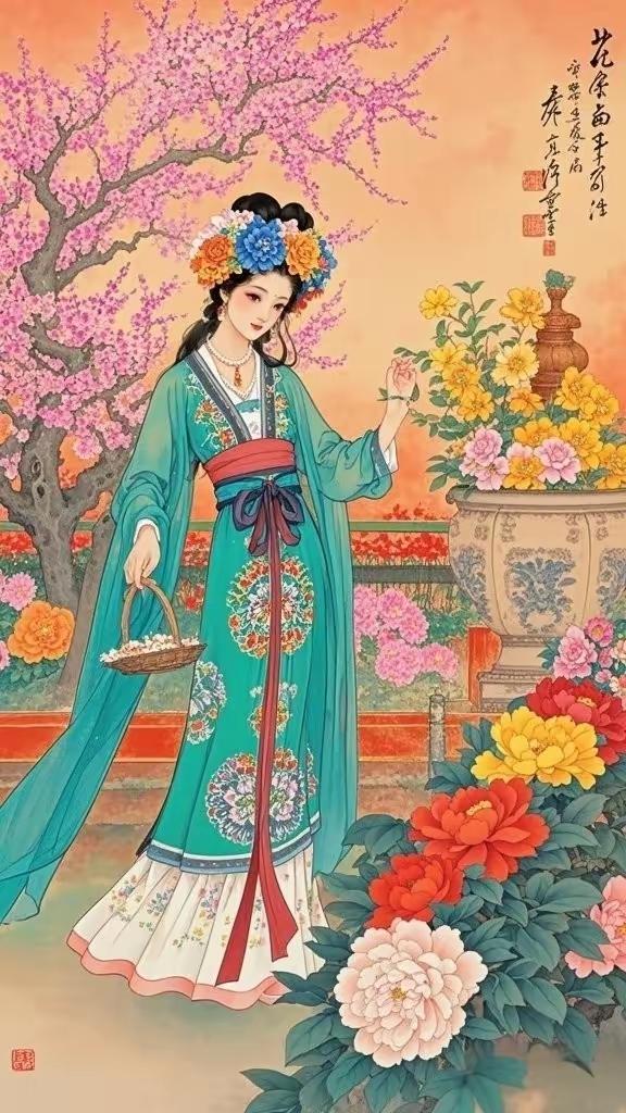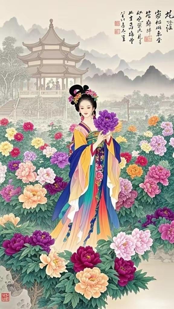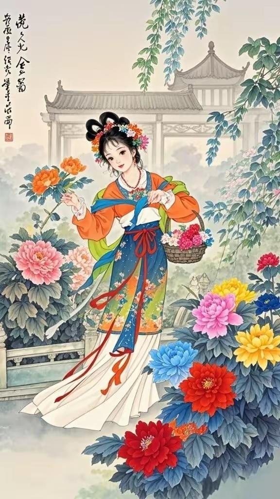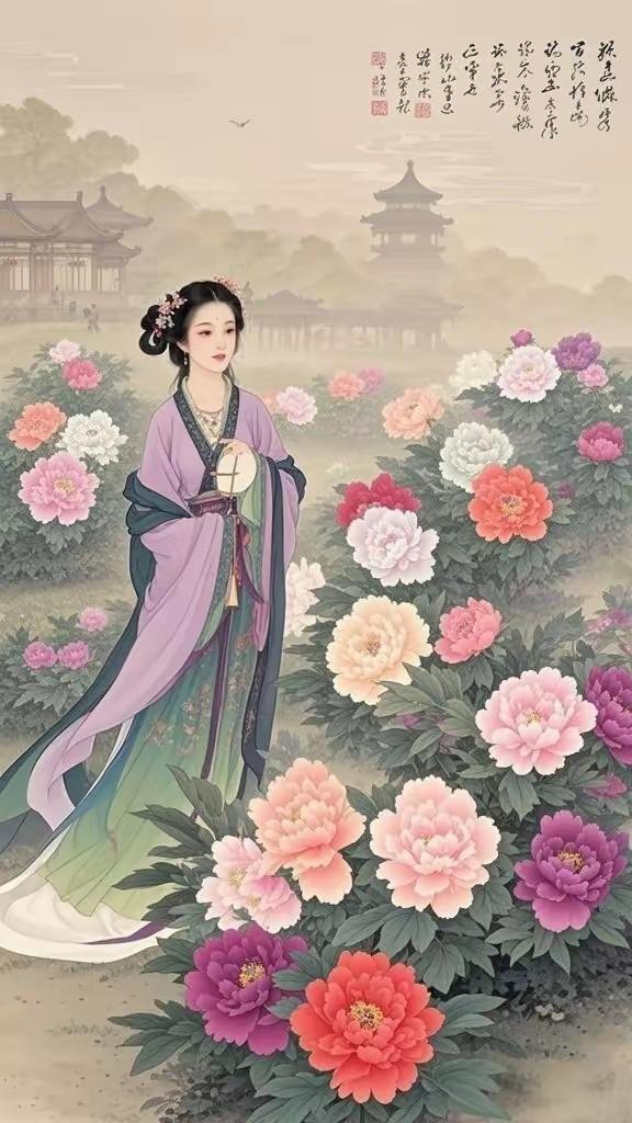 手机壁纸~国色天香,花神入梦。一袭华裳,揽尽人间春色;眉眼含情,醉赏满园芳华