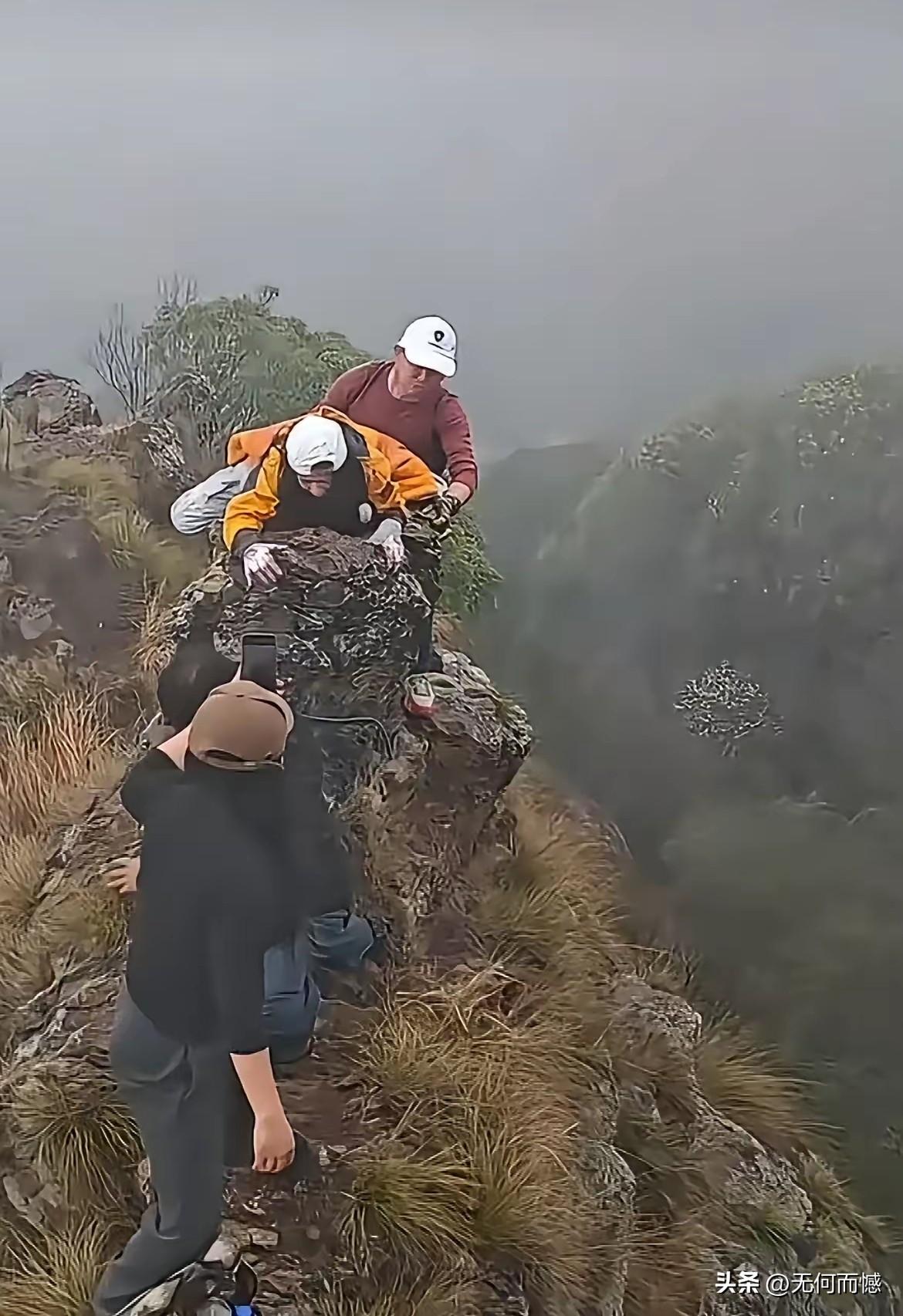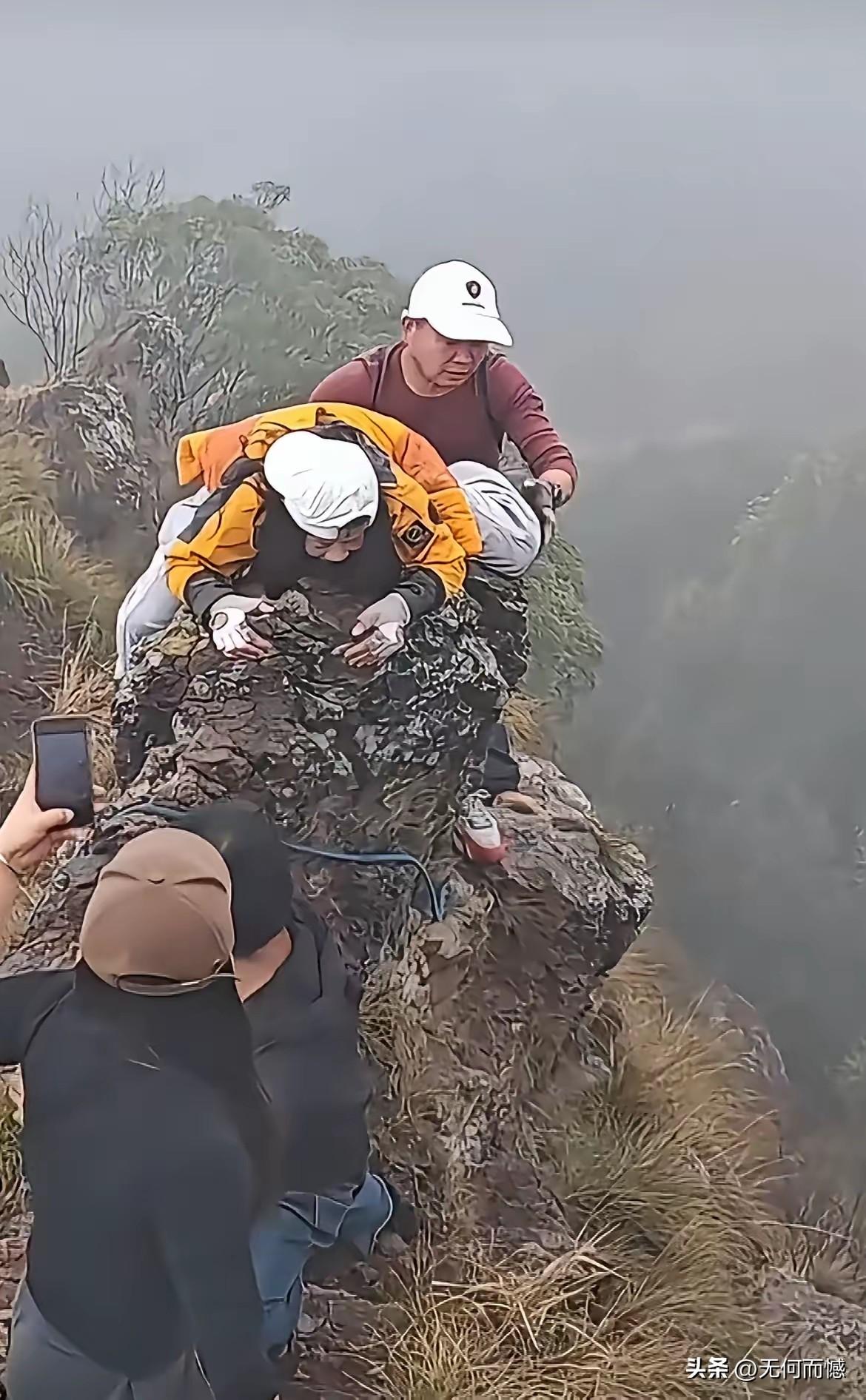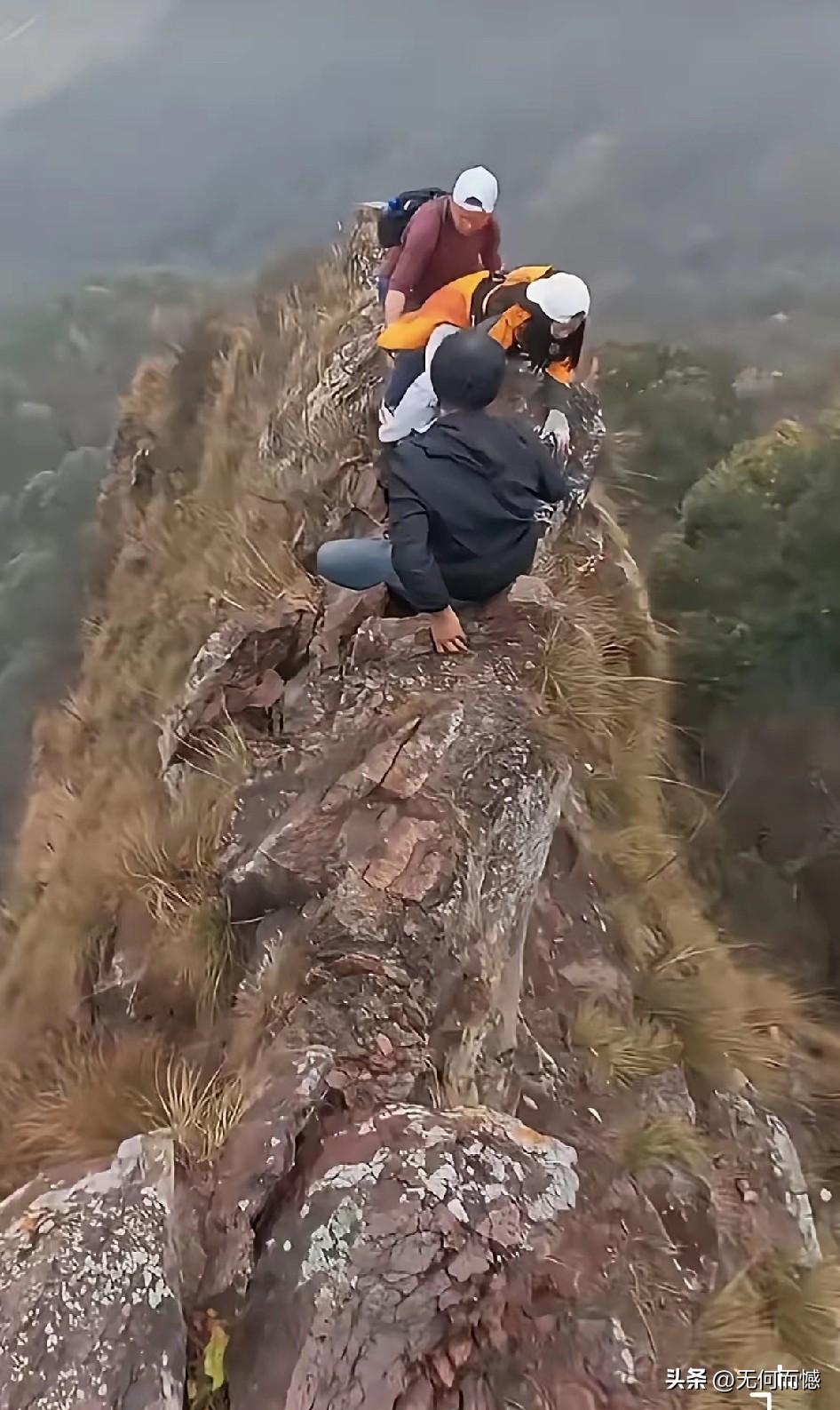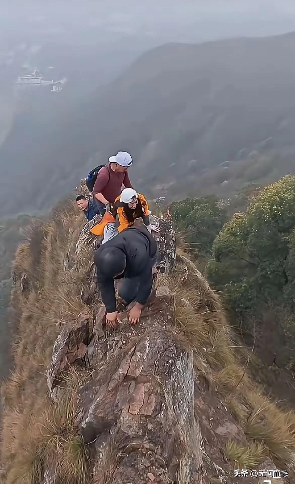 明知道野外很有危险,自己又没有这个胆量,身体素质又不好,为什么还要爬这样的野山呢?猜测这些画面,大概率是摆拍或刻意演绎,目的无非就是博眼球、涨流量。实实在在说,即便为了摆拍,也有一定的危险,一旦真的发生意外,后果不堪设想。