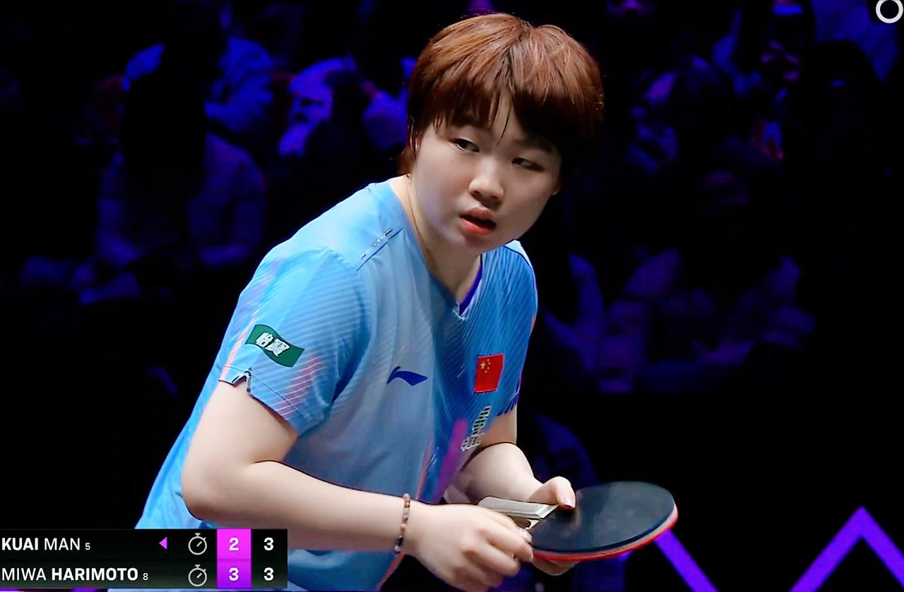 马琳指导堪称传奇,刚指导完,蒯曼立马连续两个擦网! 前五局 蒯曼2:3落后, 第六局 张本美和开局3:0, 蒯曼叫了暂停, 看的出, 蒯曼被算死后, 有些迷茫了。 马琳指导完, 连续两个擦网运气球, 追到了3:3平。 然后两人一路胶着, 8:8平之后, 蒯曼连赢2球, 10:8拿到局点, 11:9拿下。