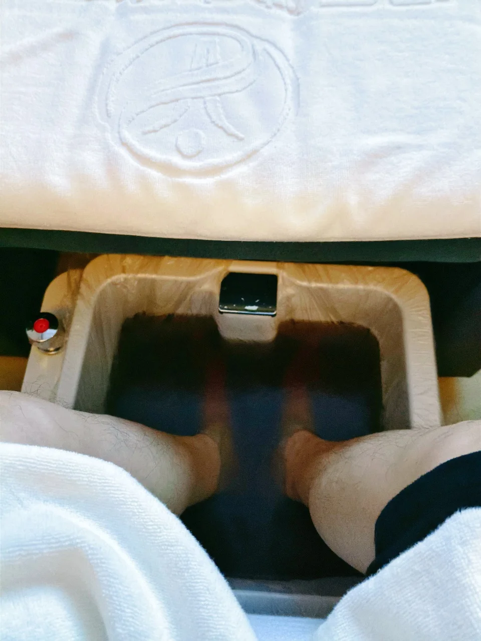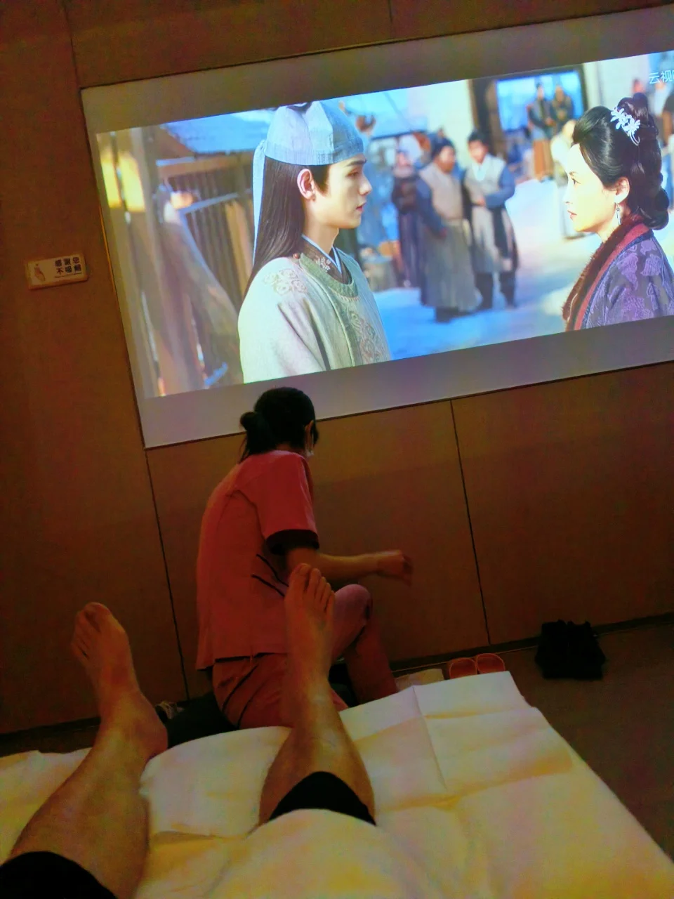 ❤️饭后稍时休息,来一个60分钟的足浴,都是独立的包间,❣️先来个头部按摩去去班味,接着肩颈放松,看着4K影片,🌹尝着水果甜品,一天的疲劳都烟消云散了