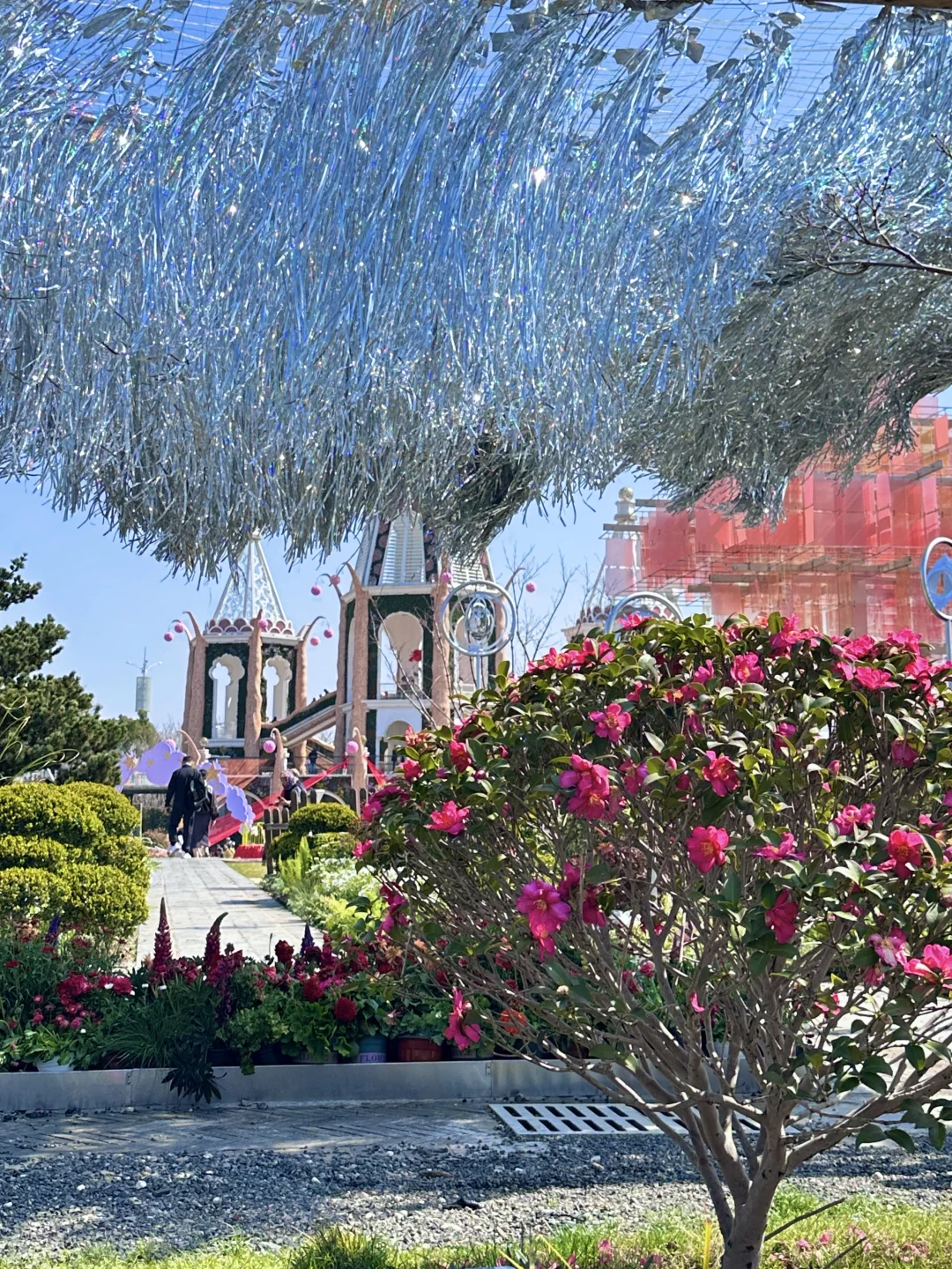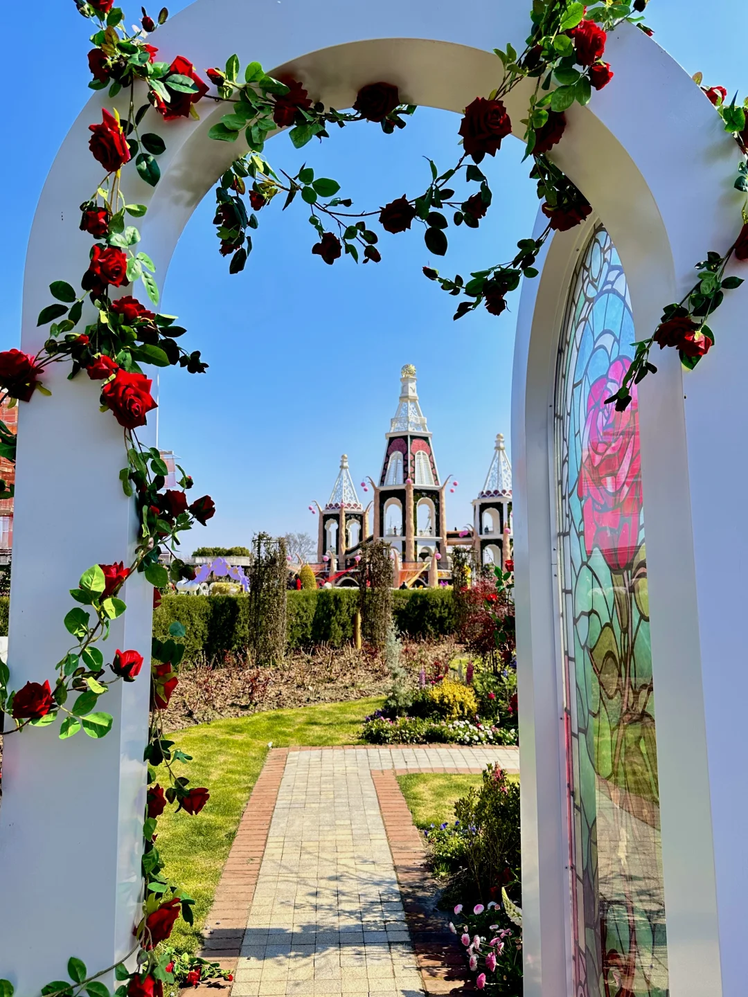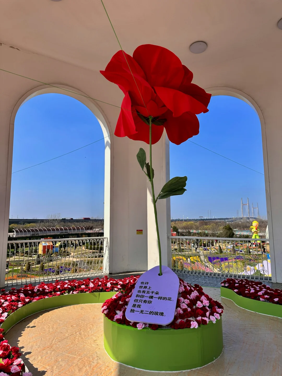 🌹 花毯左侧花园,玫瑰花的艺术装置超出片