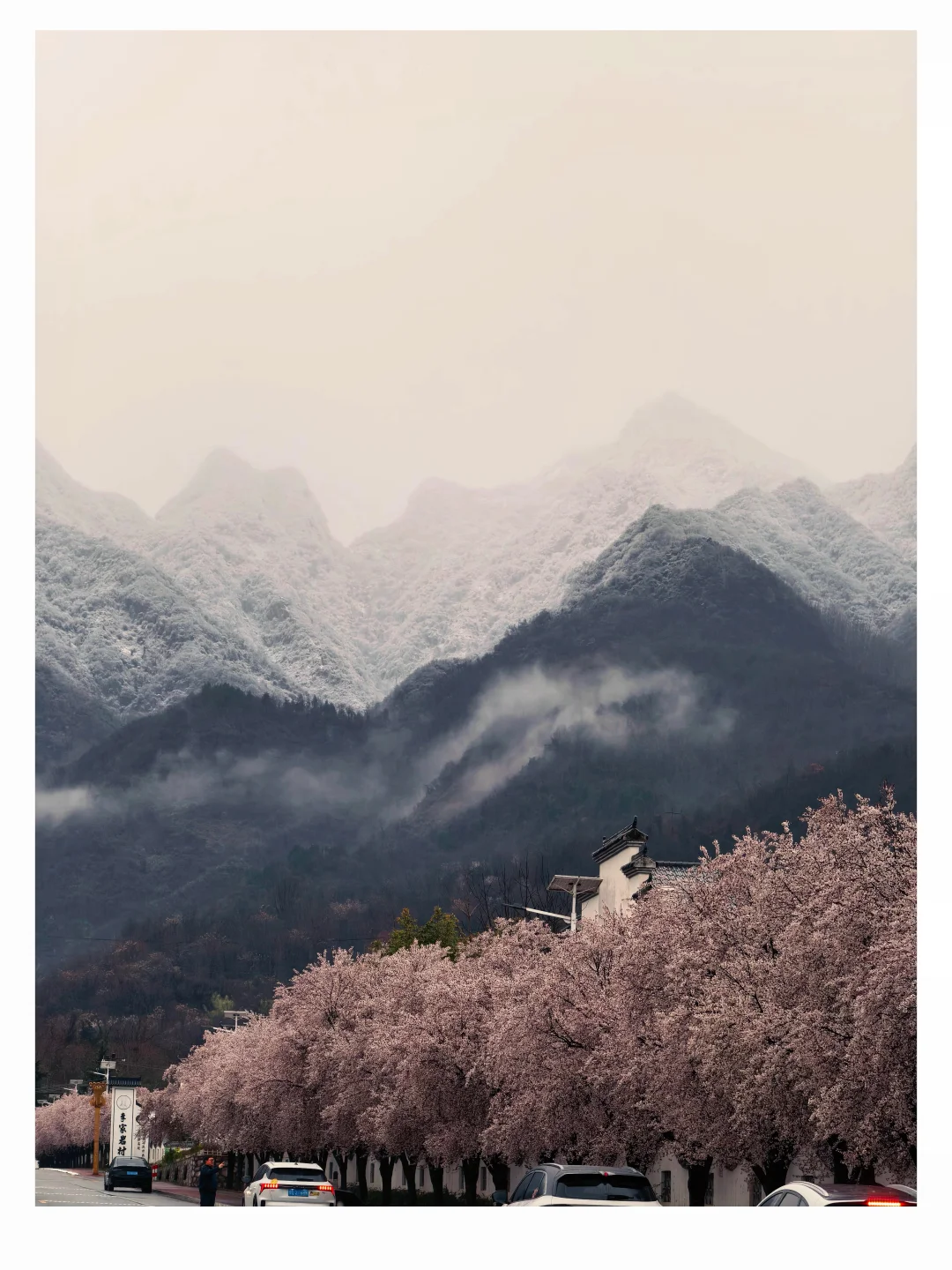 西安小伙伴们明天冲这个地方‼️雪山配樱花🌸