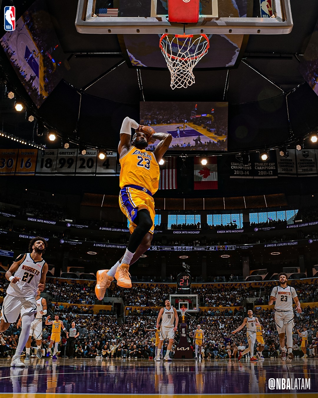 湖人开局对于约基奇的包夹非常坚决,掘金三分球没有打开。掘金逐渐无法匹配湖人的进攻强度长时间落后。