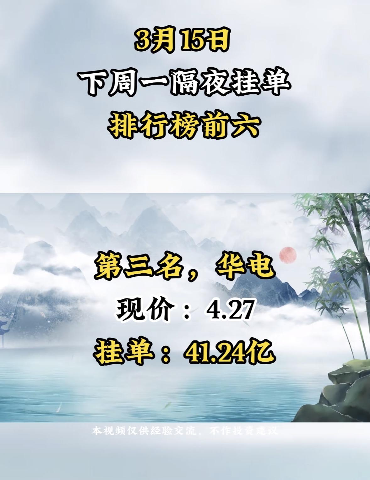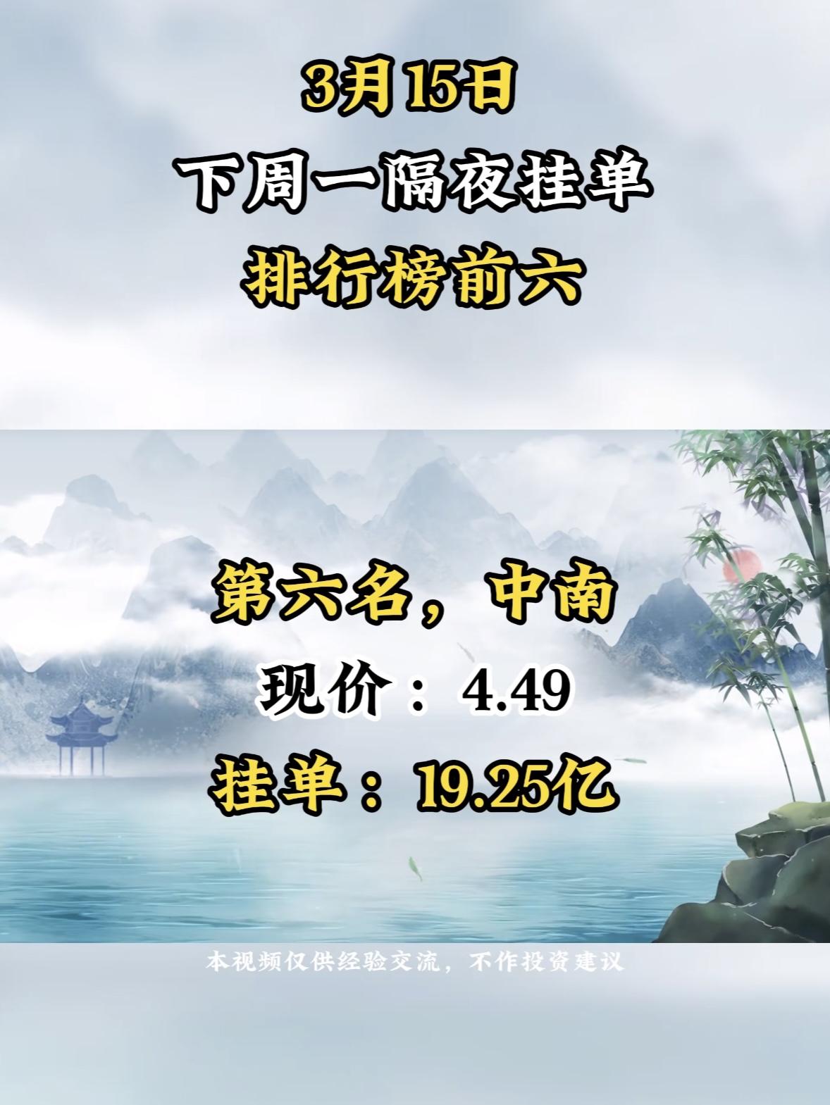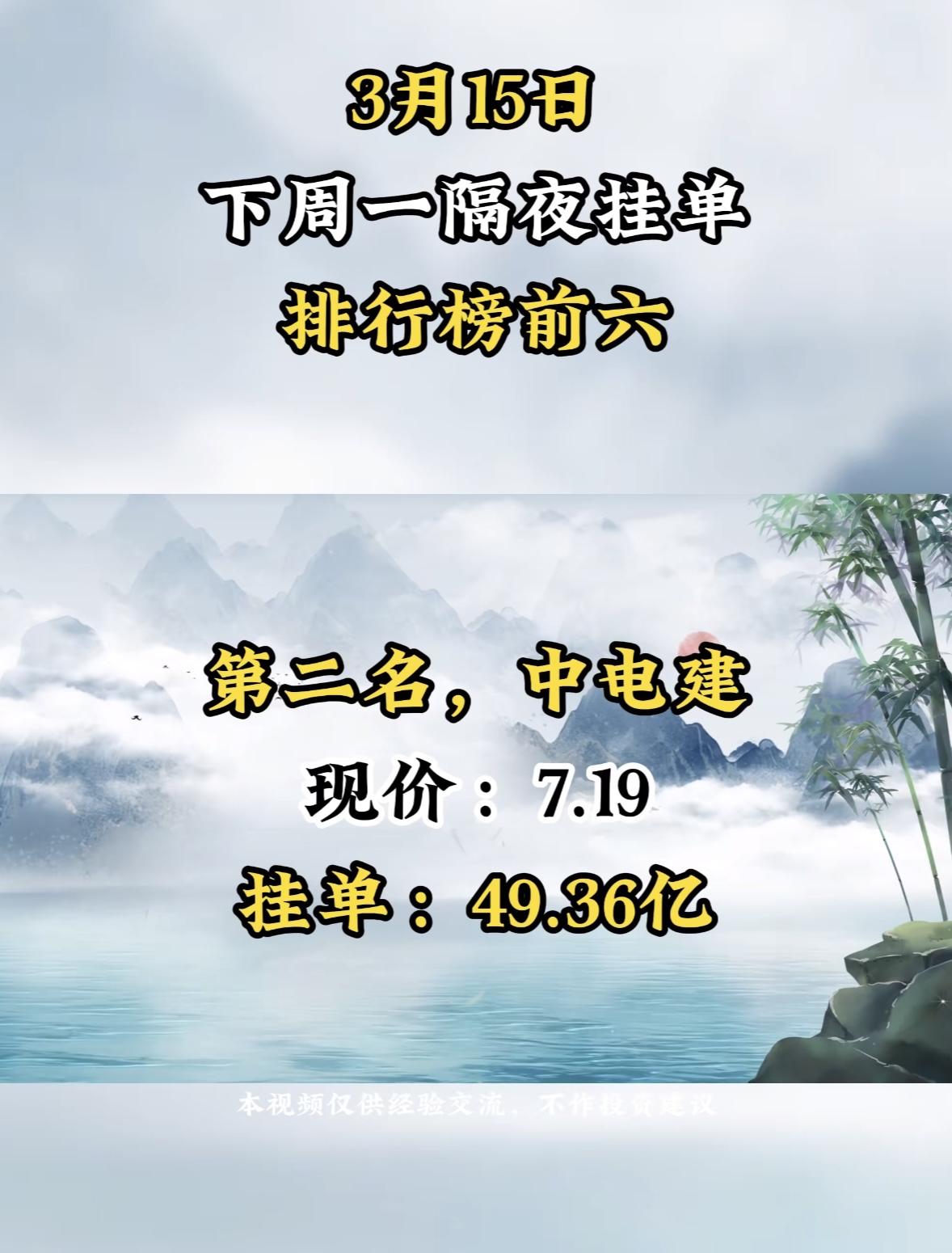 3月16日暗盘隔夜挂单前六榜单揭晓。 这暗盘隔夜挂单可不得了,是大资金提前布局的体现,没日内情绪干扰,比盘中数据稳多了。 榜单里,中国能建挂单66.05亿领先,这和当下国家“双碳”、新型电力系统建设有关,能源基建是刚需。节能风电挂单59.26亿,华电能源挂单47.86亿。而中南文化也很显眼,现价4.49,3月15日隔夜挂单就有19.25亿,3月16日暗盘挂单达25.78亿。虽说暗盘隔夜挂单不是散户能直接操作的,但能帮咱们判断资金风向,值得好好研究。