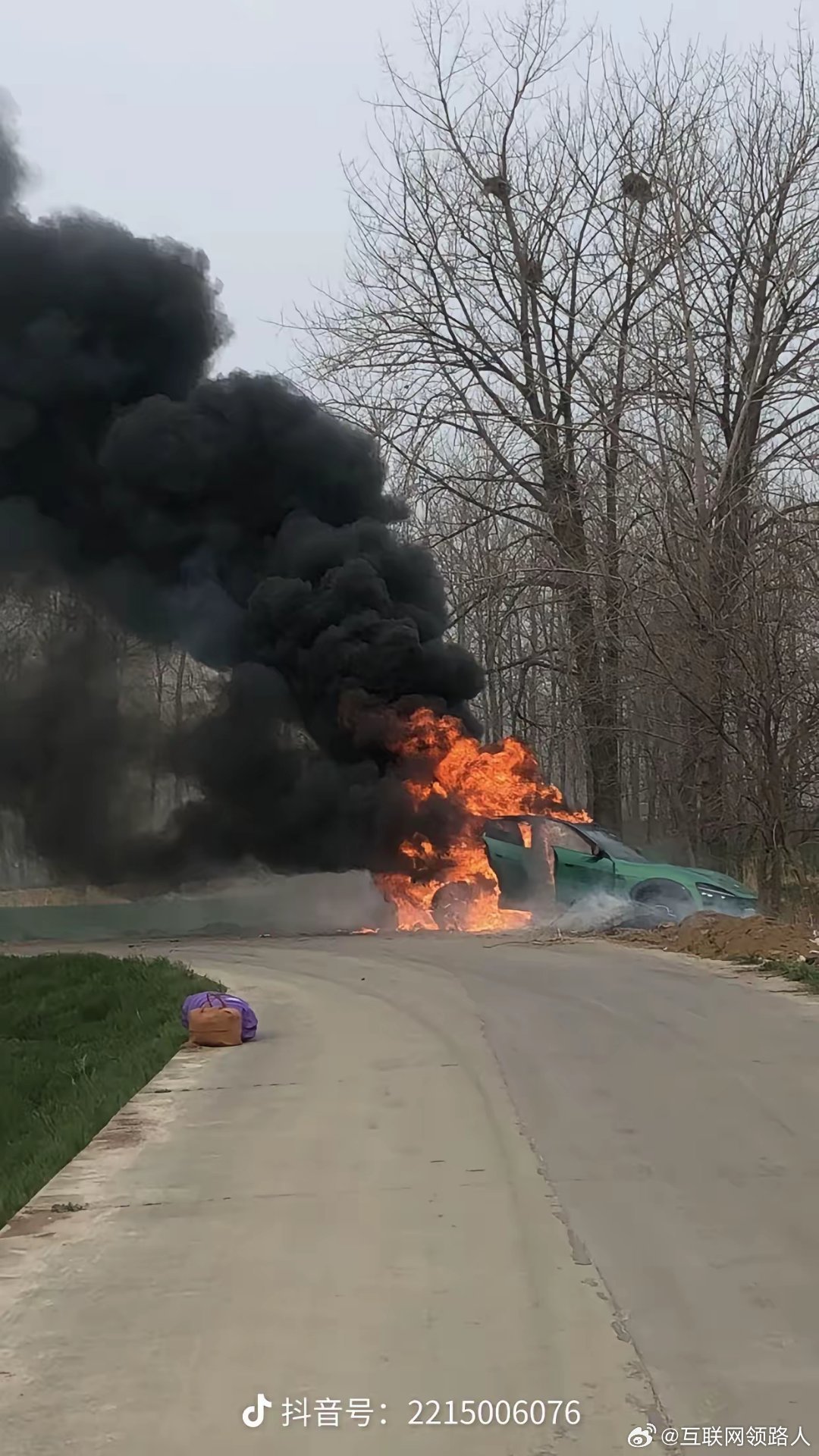 刚刚刷手机,又刷到一辆绿色轿车起火的视频。画面里,车辆已冲出道路,右侧车门敞开着,车后部燃起熊熊大火,还冒着浓密的黑烟,具体着火原因有待车辆品牌方后续发布公告说明。