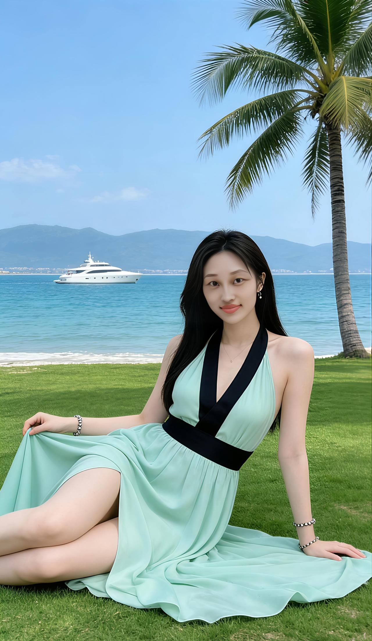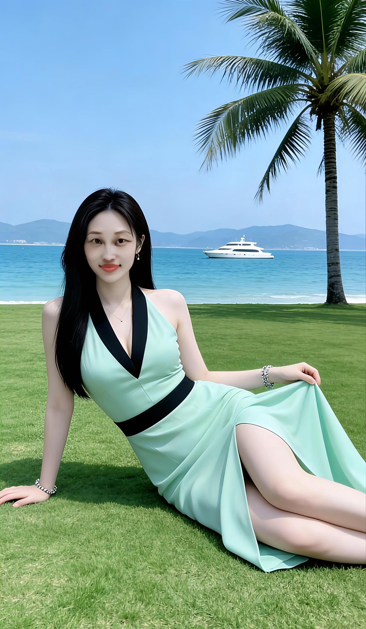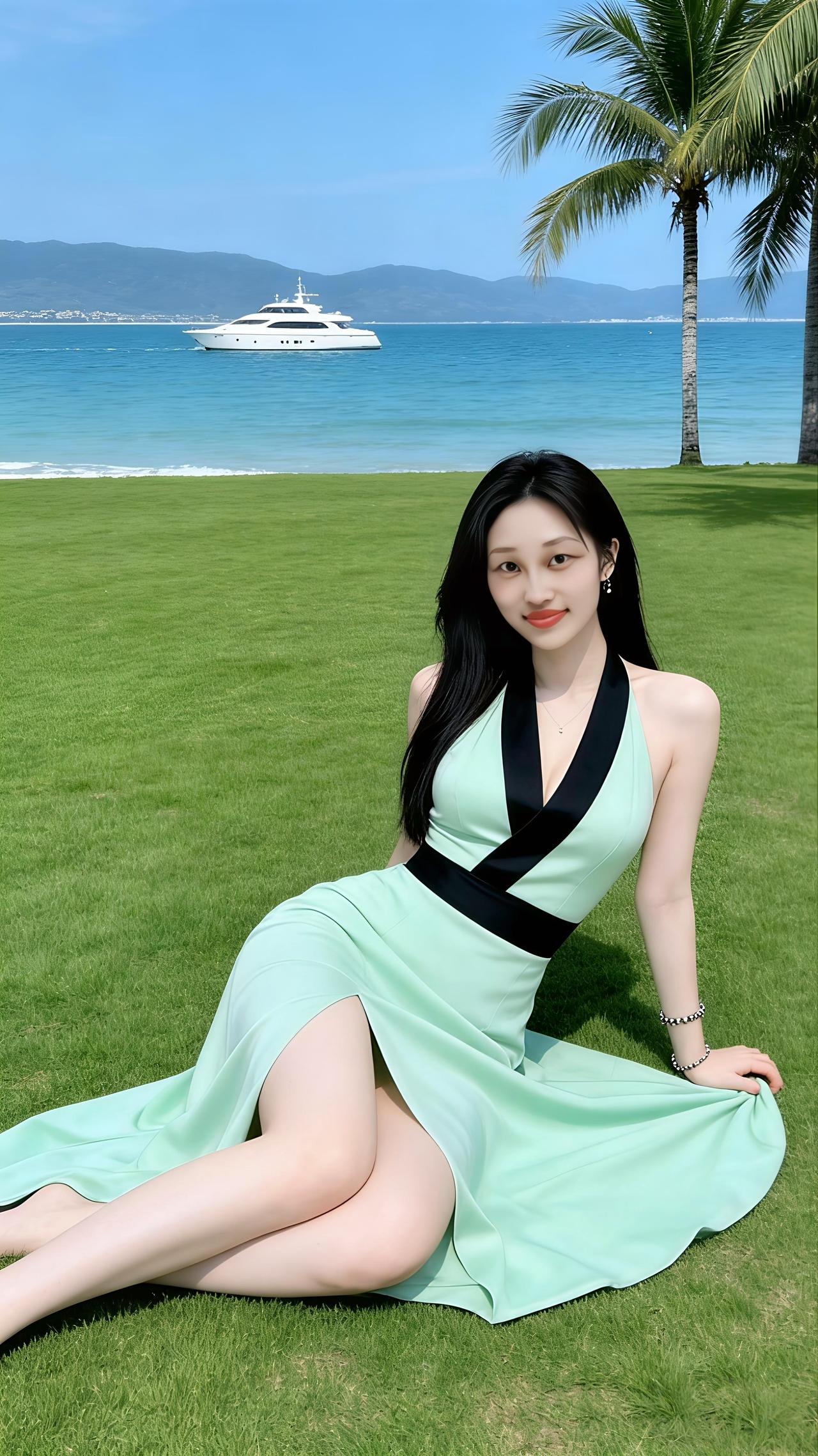海边度假风,绿裙飘飘,阳光明媚,美不胜收!🌴👗🌊