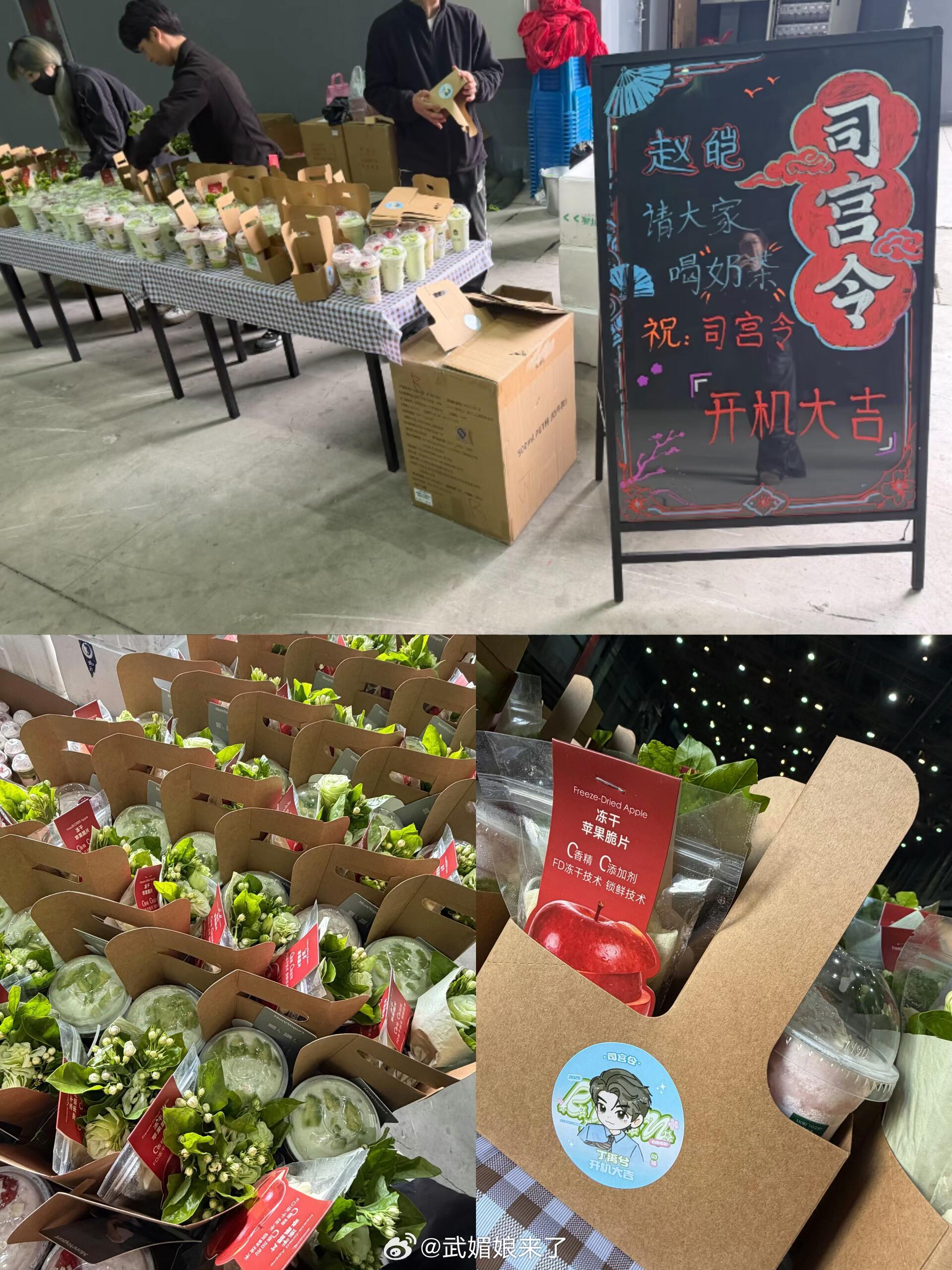 司宫令开机第一天,丁禹兮赵皑请剧组喝奶茶,还是他代言的品牌👍,有横店第一请客王丁禹兮在的剧组又有口福啦