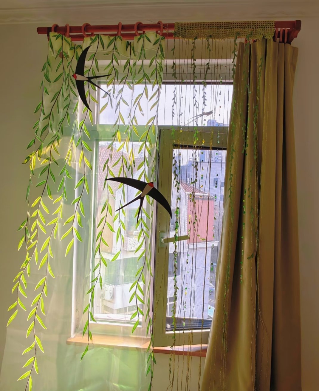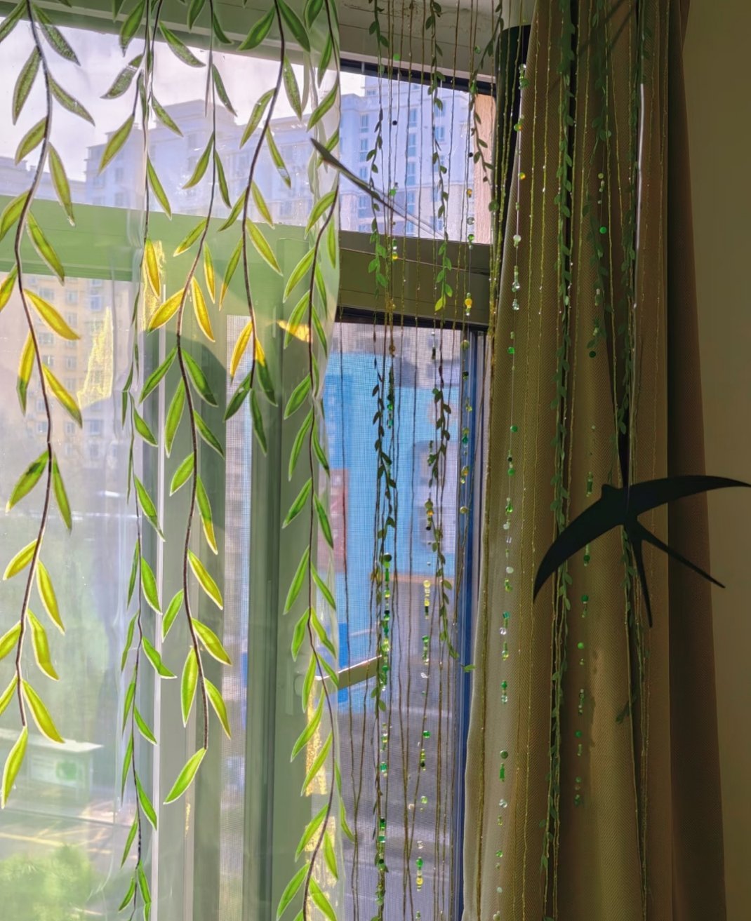 我把春天挂在窗边窗景不好,自己创造一帘春色只需要等一阵风🍃袅晴丝吹来闲庭信,摇