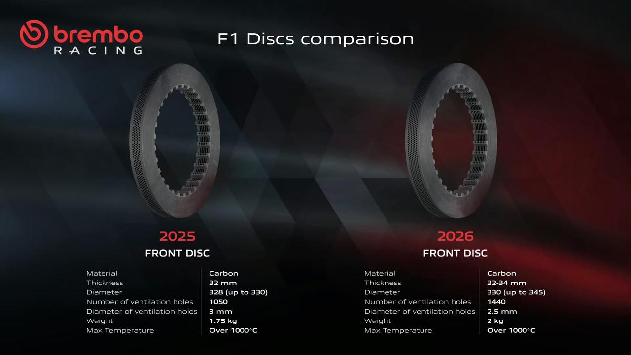 给兄弟们搞到了Brembo今年全新的F1制动领域的介绍材料。 今年F1上海站开赛前,借赛事契机我和布雷博全球高性能事业部 COO Mario Almondo 先生交流了一次。作为F1赛车非常多关键零件的供应商——整个制动系统、离合器、甚至damper,布雷博是整个赛会幕后的关键之一。 作为 F1 2026 新规元年的关键供应商,布雷博为全部 11 支车队提供卡钳,其中 5 支车队使用全套制动系统,同时以 AP Racing、Öhlins 完成制动、离合、减震全覆盖。 新规下电能占比提升至 50%,制动工况更接近混动化,但是对于制动系统的规则和要求也在持续进化。从这戏技术对比图里也能看出来,今年零件的进化很明显——布雷博同步升级了碳材料的稳定性、散热结构与线控制动逻辑,支撑更长制动周期,和更精准的能量管理。从图上能看出来,制动盘以更多、更小孔径提升散热效率,将赛道极限牢牢握在手中。 Almondo先生作为法拉利舒马赫时期的F1及赛事首席运营官,莱库宁时期的技术总监 ,听他说了很多赛车世界的幕后故事。 布雷博在全球赛事斩获超 1000 座冠军,在华建有完整生产与研发体系,把赛道验证的极致性能、安全与耐用性,同步带给民用市场。 F1[超话]