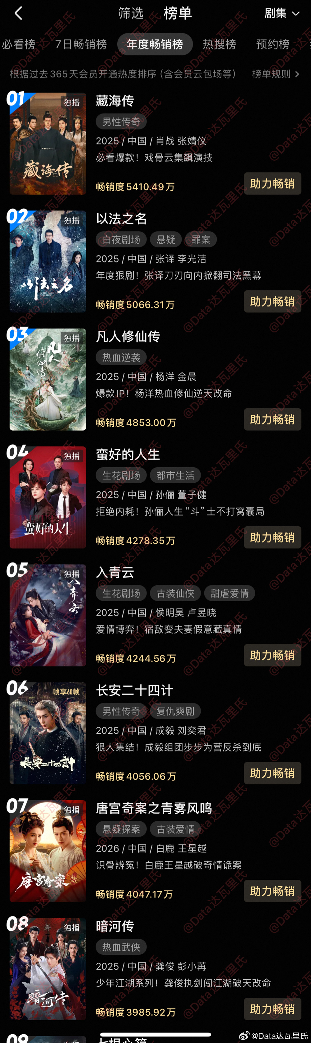 2026优酷年度畅销榜(拉新年榜)白鹿、王星越唐宫奇案畅销度 进入4000+万梯队,升到第七