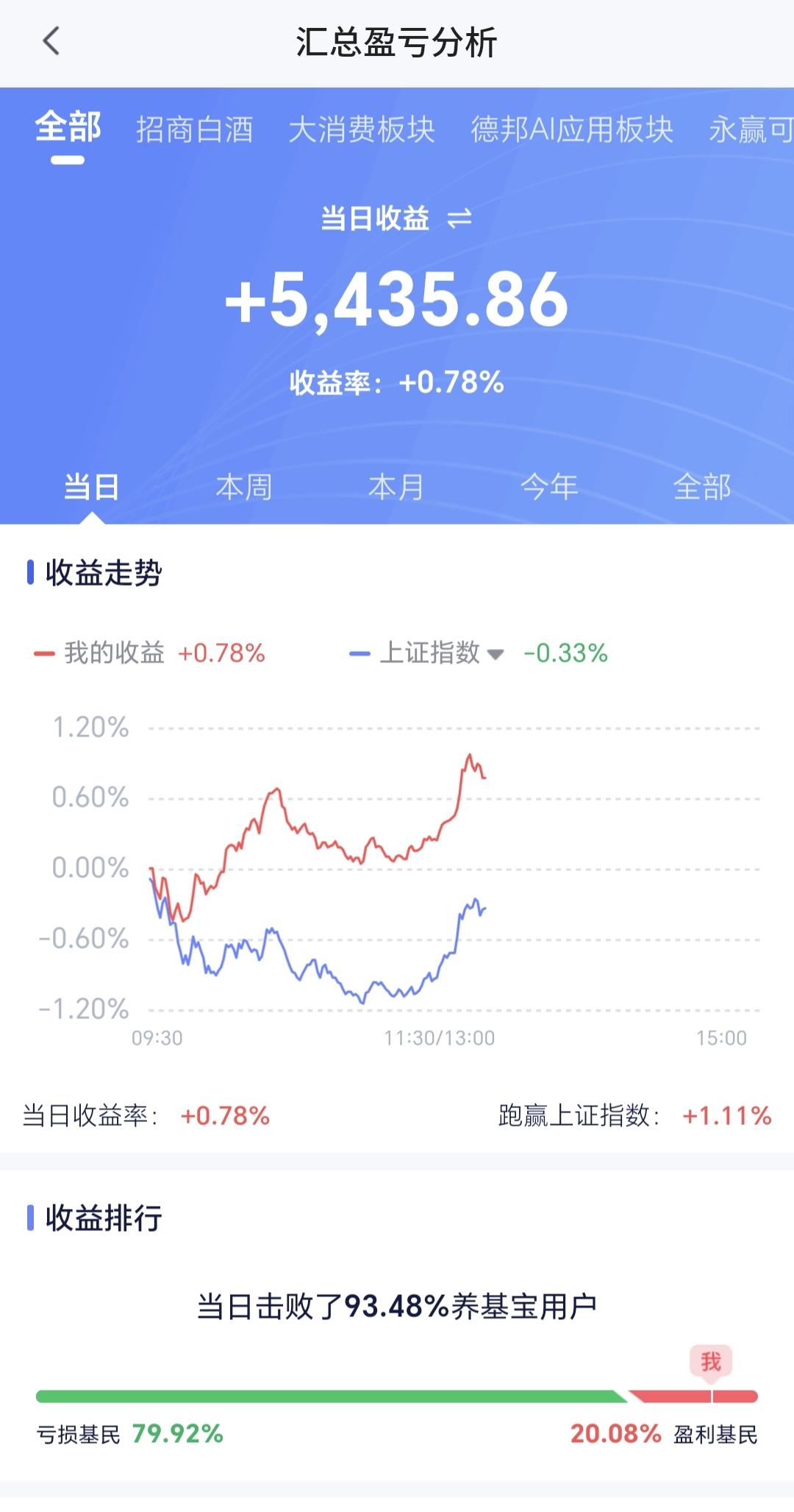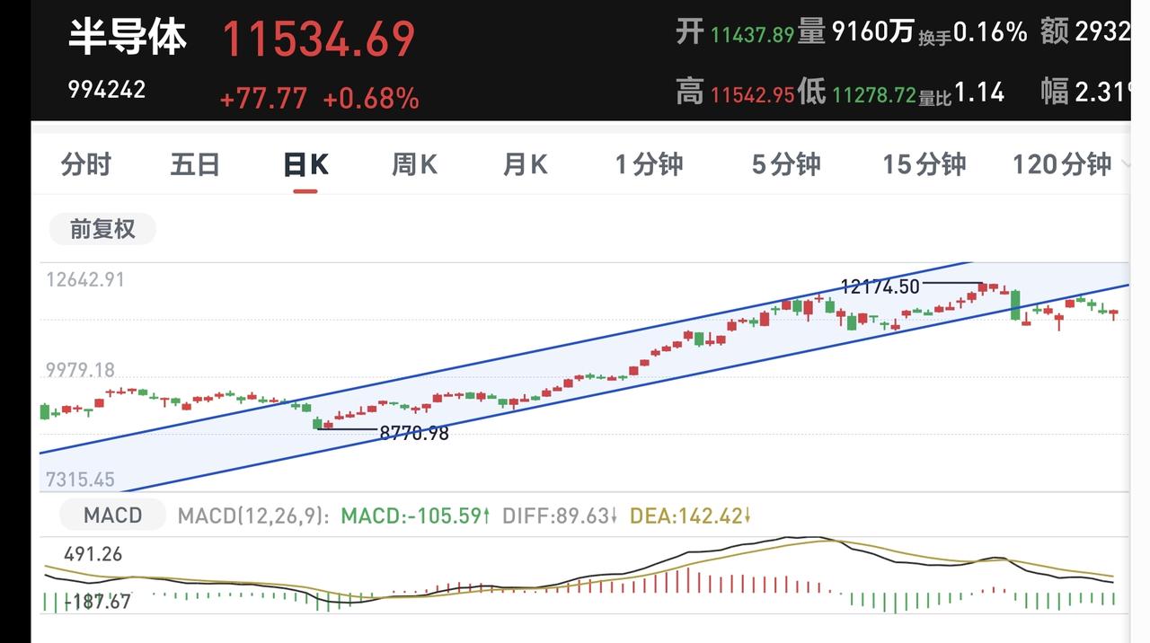 基金:市场有没有进行方向选择 下午开盘以后,指数小幅度震荡向上,上证指数的下跌幅度已经缩小,创业板指上涨了0.49%,盘中点位3326点,上证指数下跌了0.37%,盘中点位4080点。 整个股票市场,上涨2380家,下跌2941家,涨停43家,跌停7家,上涨家数少于下跌家数。 持有的基金中,盘中估值盈利金额最大的三个板块是:创新药板块,白酒板块,芯片半导体板块,估值亏损金额最大的三个板块是:证券板块,新能源汽车板块,5G板块,估值整体上涨了5435元。 整个基金市场,上涨6908家,下跌12638家,上涨幅度超过5%的4家,下跌幅度超过5%的2家。 图10是今天板块的上涨排行榜,上涨幅度最大的三个板块是:存储芯片板块,恒生科技板块,创新药板块,图11是今天板块的下跌排行榜,下跌幅度最大的三个板块是:黄金板块,钢铁板块,稀土永磁板块,图12是今天基金的加仓和减仓人数,加仓6279598人,减仓3628066人,加仓人数超过了减仓人数。 整个市场主力资金净流入最多的三个板块是:食品饮料板块,半导体板块,酒板块,主力资金净流出最多的三个板块是:国企板块,蓝筹策略板块,有色金属板块。 半导体板块现在盘中估值上涨了0.72%,持有人数在所有板块当中排名第十位。 半导体板块日线级别处于上涨趋势破位中,前段时间下跌跌破了日线级别上涨通道的下轨线,到现在为止,都没有能够收回到原来的上涨通道内,今天的上涨也没有能够改变趋势破位的状态。 半导体板块周线级别处于上涨通道中,距离周线级别上涨通道上下轨的空间差不多远,小幅度的涨跌都改变不了周线级别的上涨趋势,小幅度的涨跌都改变不了这个板块的大方向向上,长线持有的人可以继续持有。周线级别上涨通道的下轨线是长线持有者的持有条件。 光伏板块现在盘中估值下跌了1.77%,这是连续第二个交易日下跌,持有人数在所有板块当中排名第14位。 光伏板块日线级别处于上涨通道中,今天的盘中最低点就打到了上涨通道的下轨线上,近期观察会不会跌破日线级别上涨通道的下轨线,如果有效破位这条下轨线,短线持有的人需要注意风险。 光伏板块周线级别也是处于上涨通道中,距离上涨通道的下轨线还有一段空间,近期也是观察会不会下跌跌破这个周线级别上涨通道的下轨线,如果有效破位这个下轨线,长线持有的人也需要注意风险。 科创50板块日线级别处于短期下跌通道中,今天的上涨并没有能够突破日线级别短期下跌通道的上轨线,今天的上涨并没有能够改变日线级别短期的下跌趋势,短线的人继续观望。 科创50板块周线级别处于上涨通道中,小幅度的涨跌都改变不了这个板块周线级别的上涨趋势,小幅度的涨跌都改变不了这个板块大方向向上,周线级别上涨通道的下轨线是长线持有者的持有条件,只要不有效破位这条下轨线,长线持有的人都可以继续持有,截图进下面的评论区。 到现在为止,市场还是震荡走势,并没有进行方向的选择,既没有方向选择向上,也没有方向选择向下,今天究竟应该怎么办?我会在评论区留言。 花1秒钟点赞,花30秒钟评论,就是对我最大的支持,谢谢大家的支持。