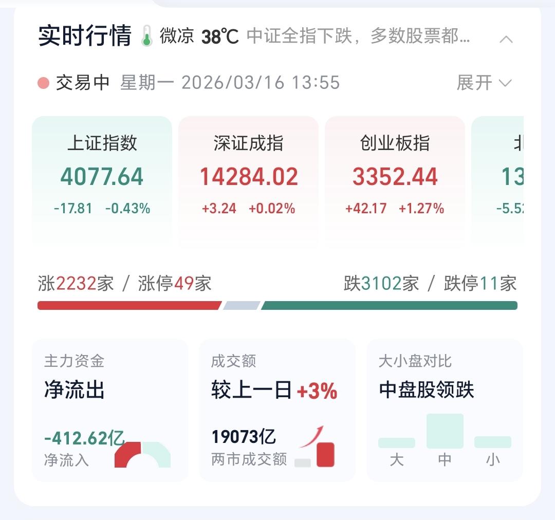 基金:市场方向不明朗的情况下应该怎么办 日本和韩国市场今天涨跌不一,日本下跌了0.72%,韩国上涨了0.68%,涨跌幅度都不大。 香港市场今天是上涨,恒生指数上涨了1.14%,国企指数上涨了1.27%,恒生科技指数上涨了2.41%,上涨幅度都不小。 我们再来看一下盘面情况,两市累计成交19073亿,相比于上周五同期放量了3%,市场上涨2232家,下跌3102家,上涨家数少于下跌家数,涨停49家,跌停11家,主力资金净流出412亿,从数据中可以看出,下午开盘以后反弹的过程当中,并没有多少资金进场,主力至今还处于大幅度净流出状态,盘面的指数虽然好看了一点,但盘面的实质并没有根本的变化。 整个市场主力资金净流入最多的三个板块是:半导体板块,芯片半导体板块,电子板块,主力资金净流出最多的三个板块是:国企板块,蓝筹策略板块,光伏板块。 整个市场上涨幅度最大的三个板块是:存储芯片板块,恒生科技板块,创新药板块,下跌幅度最大的三个板块是:黄金板块,钢铁板块,电力板块。 整个基金市场,上涨7450家,下跌12101家,上涨幅度超过5%的7家,下跌幅度超过5%的2家。 1:电网设备板块今天下跌,今天的下跌跌破了日线级别上涨通道的下轨线,短线持有的人需要注意风险,如果有效破位这条下轨线,短线持有的人需要考虑要不要止盈出来观望。 电网设备板块周线级别处于上涨通道中,今天的下跌并没有跌破周线级别上涨通道的下轨线,只要能够保持在这个上涨通道内运行,长线持有的人都可以继续持有。 2:商业航天板块今天也是下跌,这个板块日线级别处于短期下跌通道内,今天的下跌并没有改变这个板块日线级别短期的下跌趋势,短线的人可以继续观望。 商业航天板块周线级别处于上涨通道的上方,今天的下跌来到了上涨通道的上轨线上,即使下跌到这个上涨通道内,也还是处于上涨趋势中,长线持有的人可以继续持有,上涨通道的下轨线是长线持有者的持有条件。 3:固态电池板块日线级别和周线级别都处于上涨通道中,今天的下跌没有改变这两个级别的上涨趋势,短线持有的人和长线持有的人都可以继续持有,日线级别上涨通道的下轨线是短线持有者的持有条件,周线级别上涨通道的下轨线是长线持有者的持有条件,只要这两个级别的上涨趋势不被改变,短线持有的人和长线持有的人都可以继续持有。 4:券商板块今天小跌,这个板块日线级别处于下跌通道中,今天的下跌并没有改变这个板块日线级别的下跌趋势,短线的人继续观望。 券商板块周线级别处于上涨趋势破位中,已经连续在上涨通道下方震荡了五个星期,属于有效破位状态,想进场的人参考日线级别下跌通道的上轨线,在上涨突破日线级别下跌通道上轨线的时候,再考虑要不要进场。 持有基金现在盘中估值上涨了7739元,盈利金额最大的三个板块是:创新药板块,芯片半导体板块,白酒板块,亏损金额最大的三个板块是:证券板块,新能源汽车板块,上证50板块。 到现在为止,市场还是处于震荡状态中,市场的方向还是很不明朗,在市场方向不明朗的情况之下,我们能做的事情不多,喝茶看戏是最好的状态,今天究竟应该怎么办?我会在评论区留言。 花1秒钟点赞,花30秒钟评论,就是对我最大的支持,谢谢大家的支持。