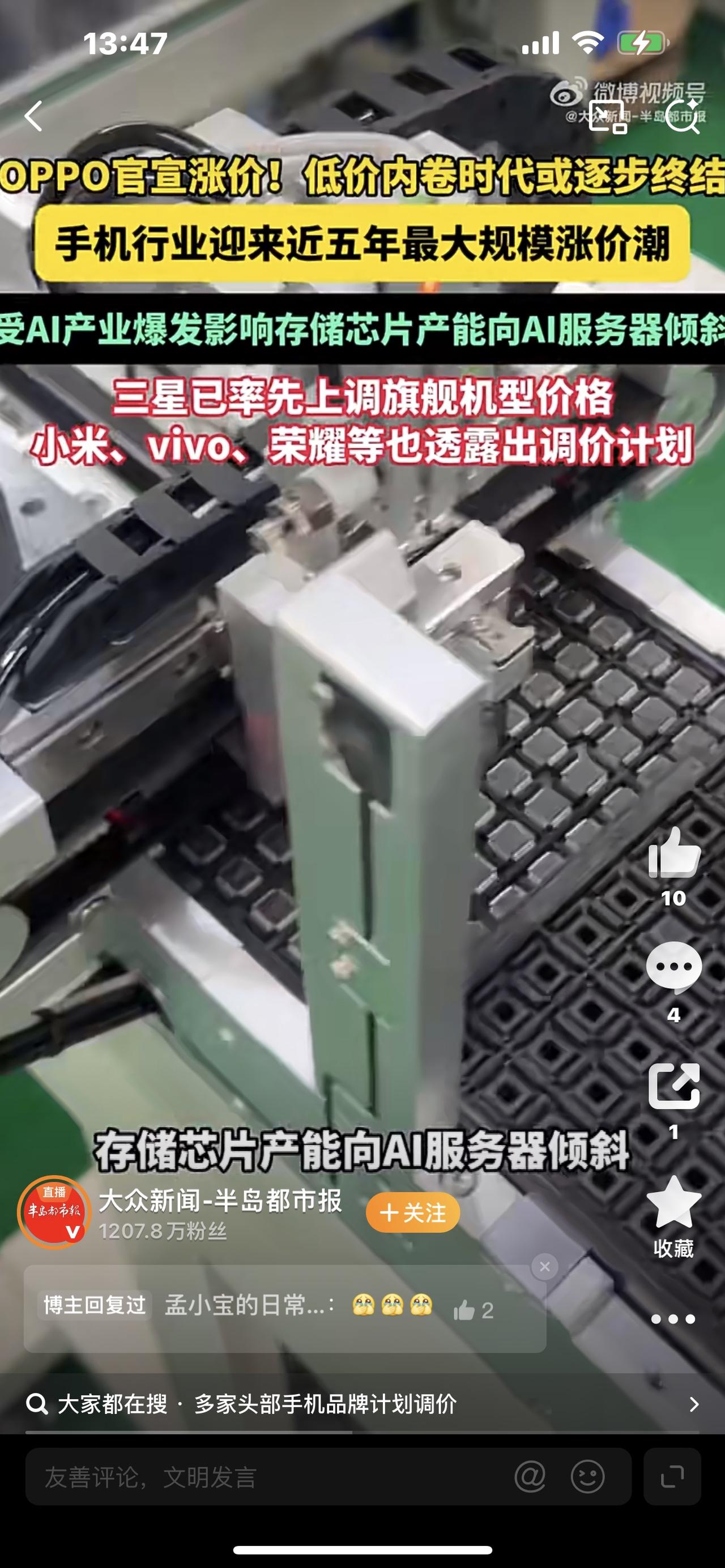 突发!vivo正式宣布涨价,3月18日执行,手机圈彻底炸了! 刚刚,vivo官宣涨价!iQOO也一起涨,3月18日全渠道上调售价!前几天OPPO刚涨,现在vivo紧跟,小米、荣耀陆续跟进,全民换机时代,手机集体涨价,普通人还换得起吗? 很多人第一反应:又想割韭菜?真相没那么简单。 这不是vivo一家任性,而是全行业被逼无奈。受AI浪潮爆发,全球存储芯片被服务器抢产能,内存、闪存价格暴涨超300%,屏幕、芯片、原材料全线涨价,厂商成本扛不住了。 这次涨价覆盖新机、旧机,旗舰最高涨500元,中端机涨300-400元,千元机压力最大。有人吐槽:旧机不降价反而涨,太不讲道理;也有人理解:成本摆在这,不涨价只能减配甚至停产。 短短几天,国产手机从内卷比价,进入集体涨价潮,有人慌着囤库存,有人观望等降价,市场彻底变天。 手机涨价,最纠结的还是咱们老百姓。 想换台好用、耐用、放心的手机,却要多花几百上千元。谁的钱都不是大风刮来的,性价比才是硬道理。 希望品牌涨价不忘品质,技术对得起价格;也希望咱们理性消费,不跟风、不焦虑,适合自己的才最好。 这波手机涨价潮,你会提前入手,还是继续观望?对vivo手机 vivo宣传片 vivo放暑价