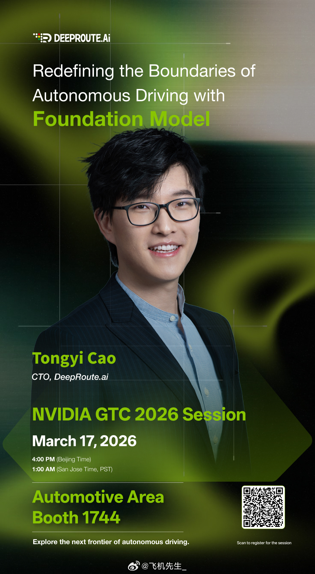 这周 GTC 元戎CTO曹通易会聊聊元戎下一代 VLA,主题是 “用基座模型重塑智能边界” 。在卷“本能”时,元戎也会在“认知”上进一步突破。