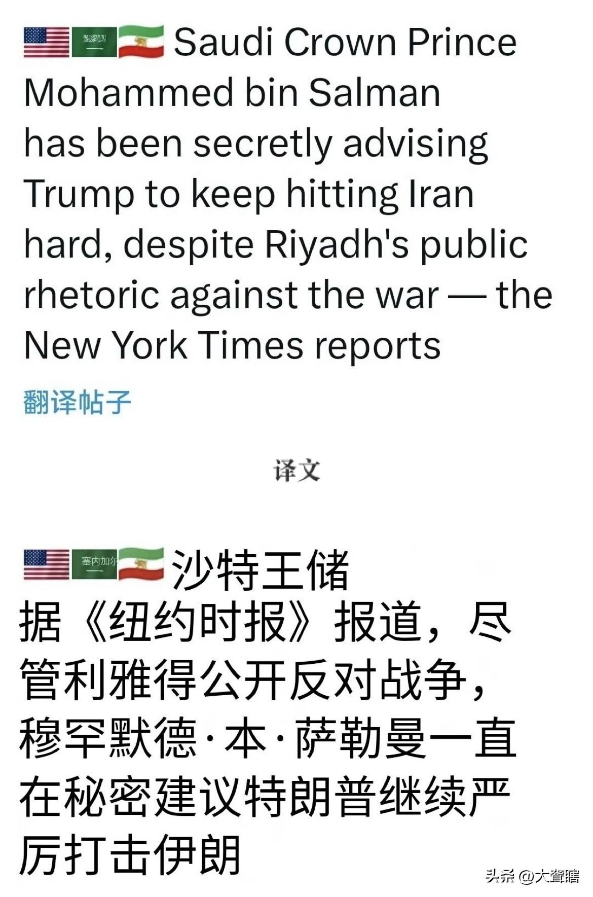 美媒曝沙特王储建议美国继续战争! 美国《纽约时报》称沙特王储穆罕默德·本·萨勒曼