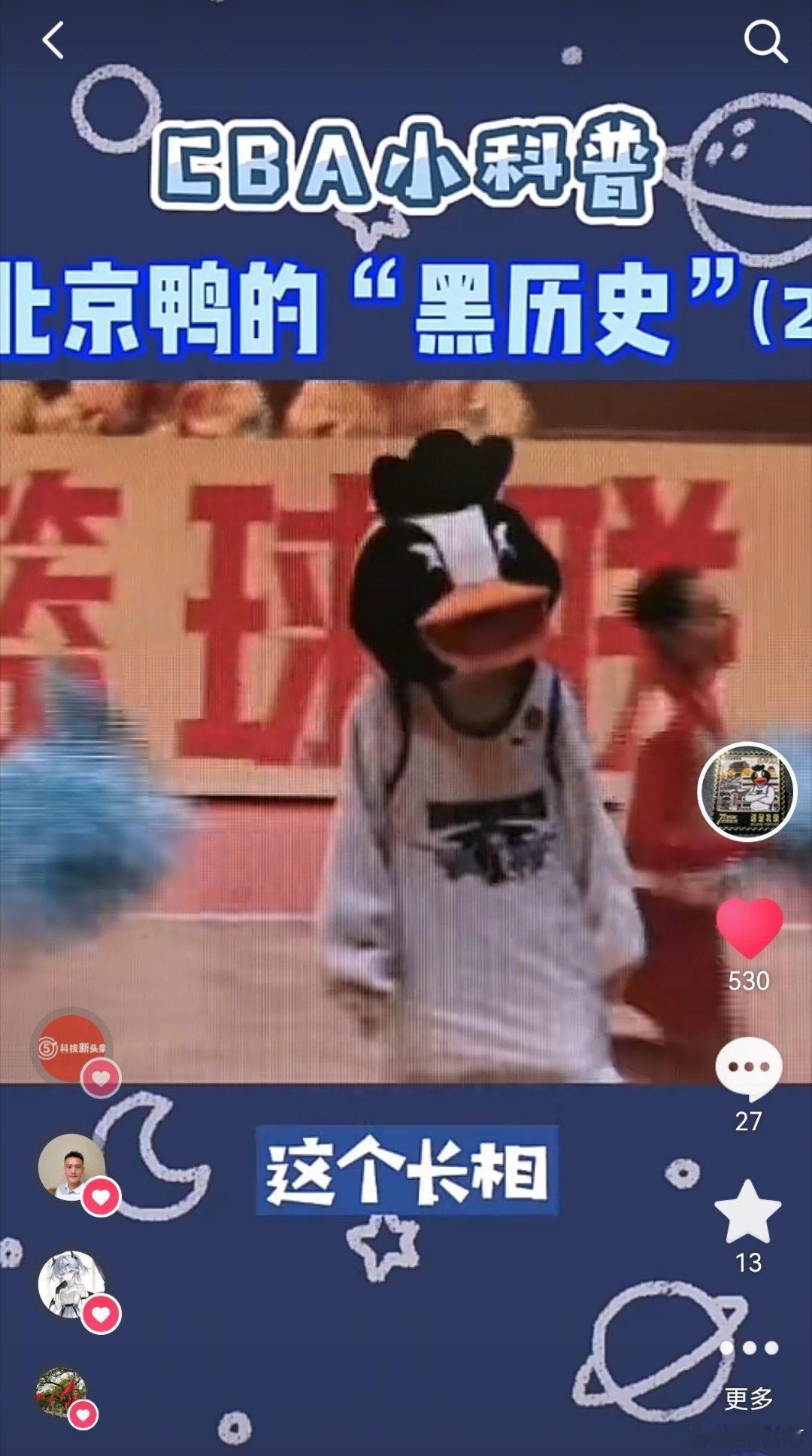 其实他并不是最初那版霹雳鸭形象,你们可以猜猜他是哪个赛季的?当时首钢队的主场是哪里?