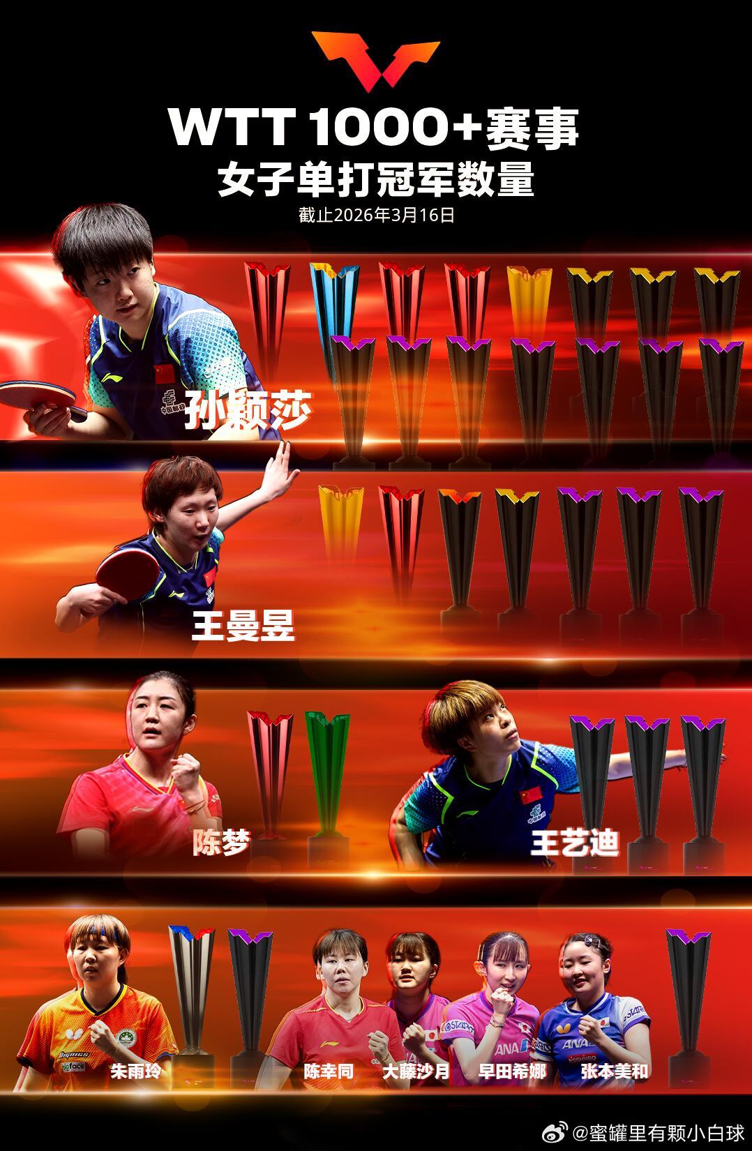 孙颖莎王楚钦一骑绝尘!!!!太牛了孙颖莎王楚钦叕是第一国际乒联2026第12周世