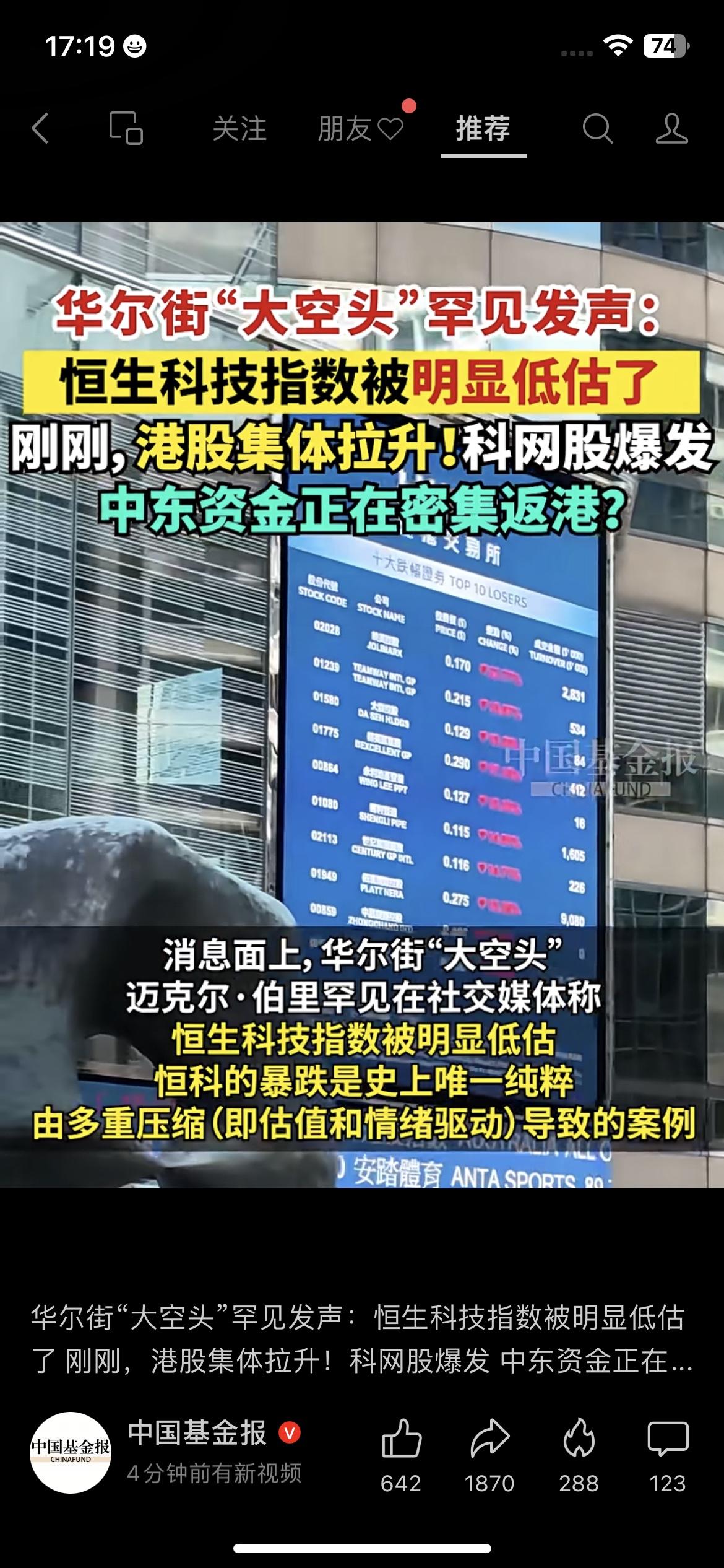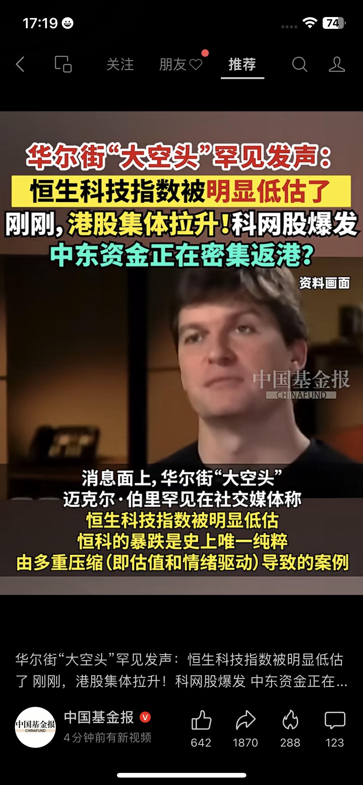 华尔街「大空头」迈克尔·伯里罕见发声,说恒生科技指数被明显低估,恒科的暴跌是史上唯一纯粹由估值和情绪驱动导致的案例。 消息一出,港股直接集体拉升,科网股爆发,还有消息说中东资金正在密集返港,甚至有客户要在香港设立家族办公室。 这对咱们普通人来说,是不是意味着港股的机会来了? 其实别太激动,伯里的观点更多是长期判断,短期市场还是受地缘、政策影响很大,盲目抄底很容易被套。 如果真的想布局,不如先定投指数基金,分散风险,别all in赌一把。 市场有风险,投资需谨慎,不构成任何投资建议。 港股 恒生科技指数 中东资金