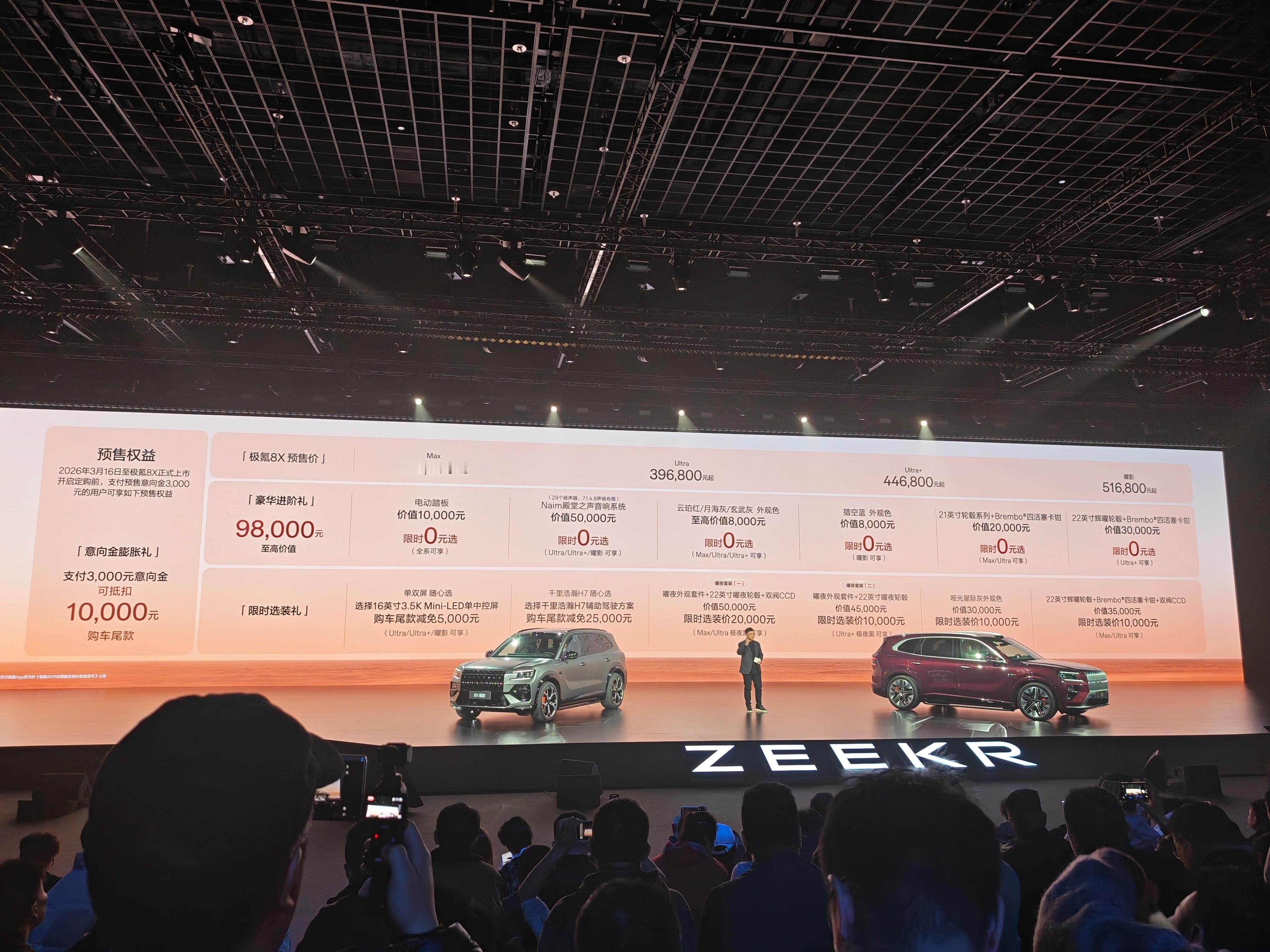 现场看了极氪8x ,颜值确实可以,蛮符合我的审美,预售价37.68万元起,价格挺到位的,毕竟这么好的硬件,大家蹲一波后续上市价格~