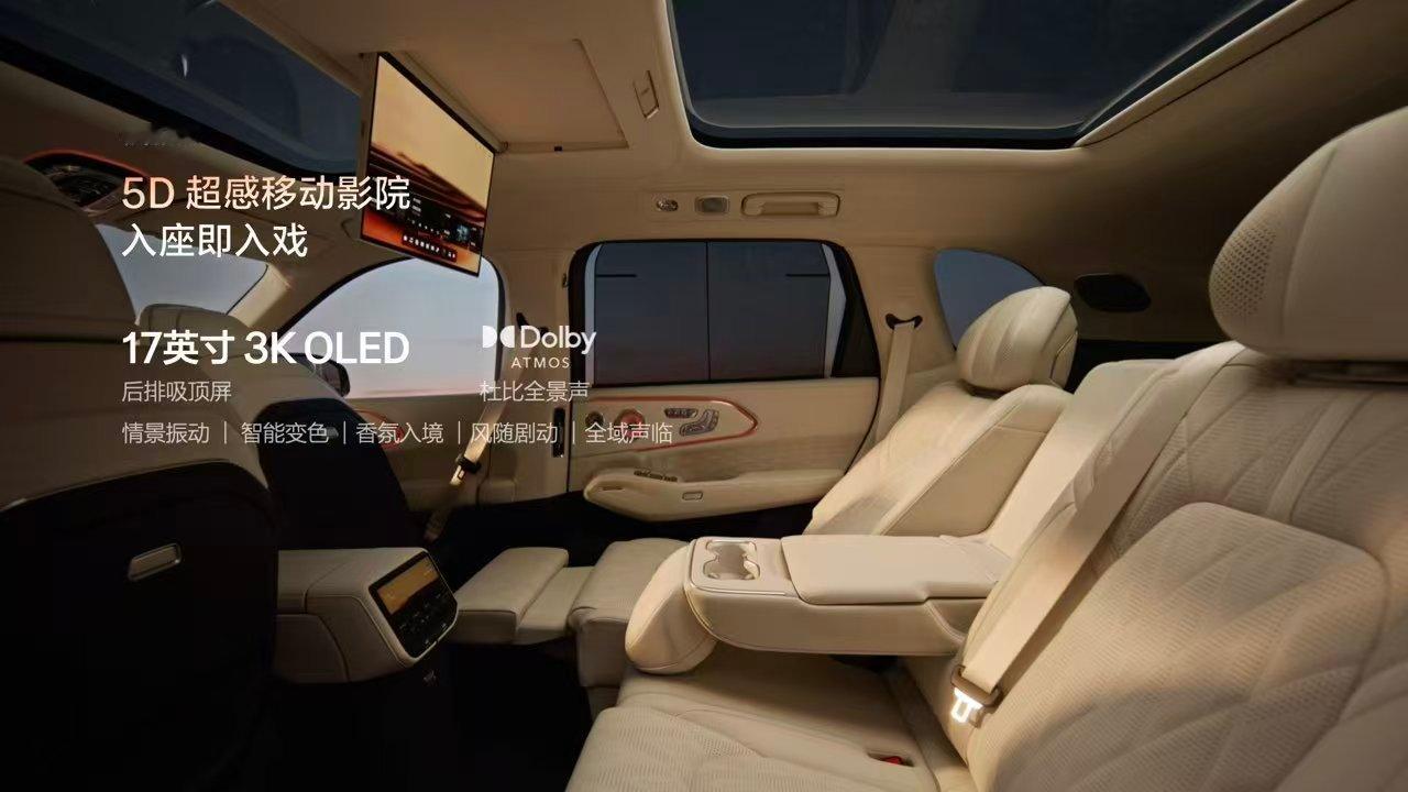 极氪8x 搭载了同级最阔大五座,同级大五座唯一超长滑轨,同级最豪华伊姆斯躺椅,并有超豪华品牌29扬Naim音响,打造移动5D超感影院,大五座也能更舒适!极氪8X新公路之王极氪8X曜影