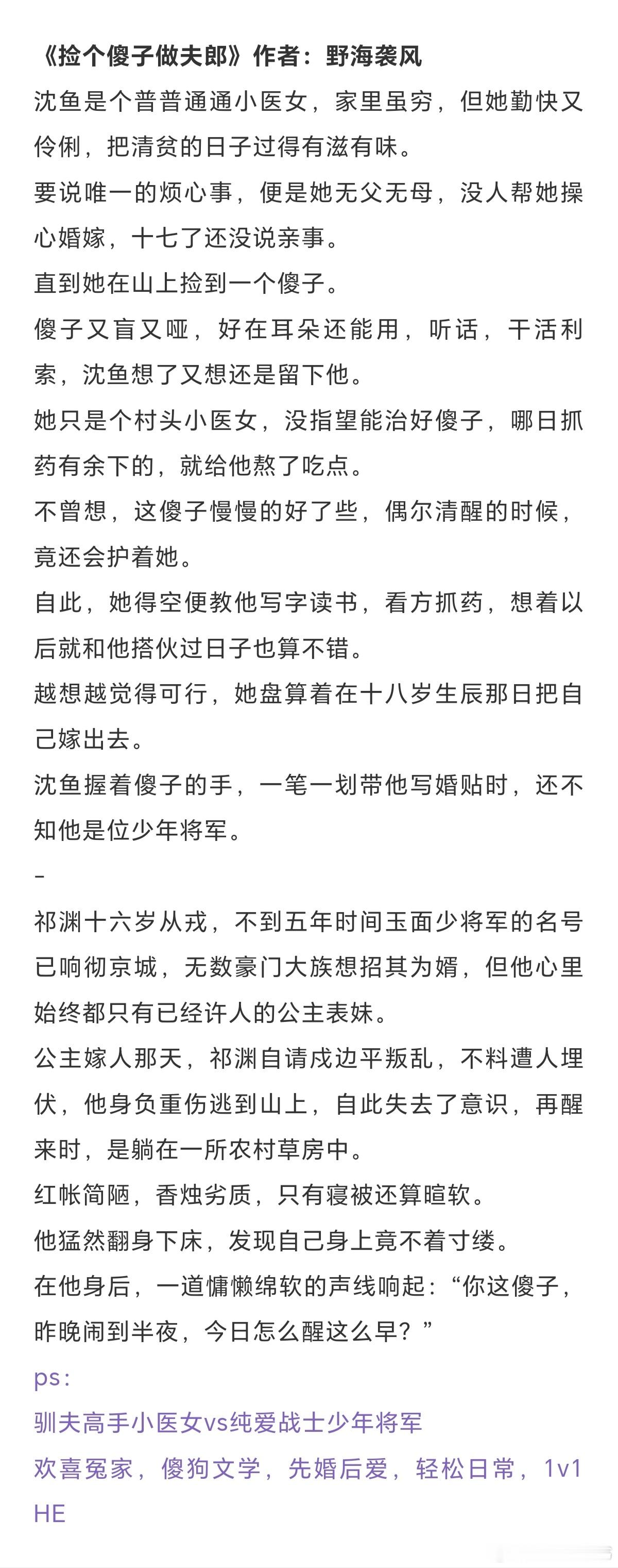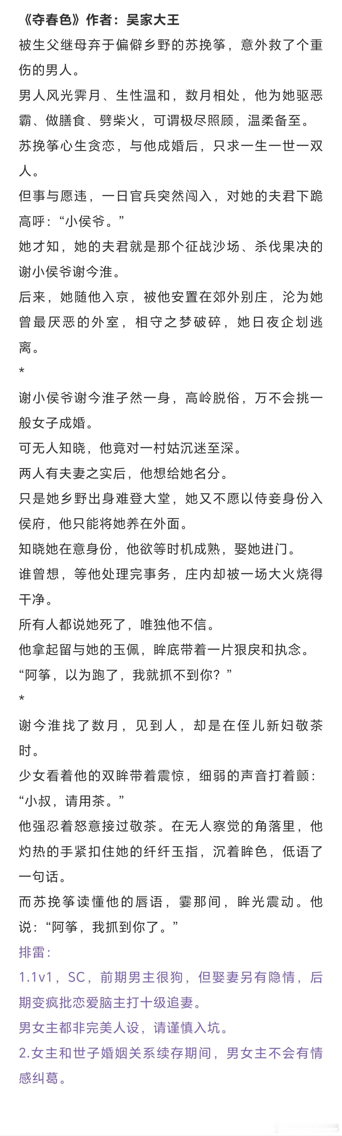 现言:《庸俗童话》作者:七宝酥《六十二年冬》作者:多梨《昼夜关系》作者:夏末秋《驯服》作者:春与鸢《上北大还是上清华》作者:浮瑾古言:《侯爷被我退婚后》作者:苏幕幕《夺春色》作者:吴家大王《契婚》作者:唐时锦《捡个傻子做夫郎》作者:野海袭风《长陵》作者:容九言情小说推荐古言现言