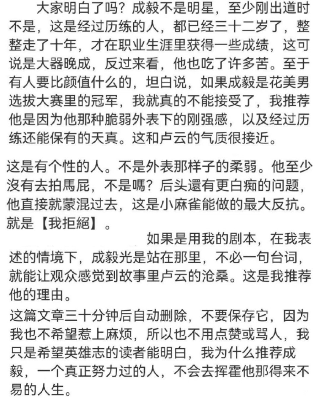 英雄志作者孙晓、莲花楼作者藤萍对成毅的评价。