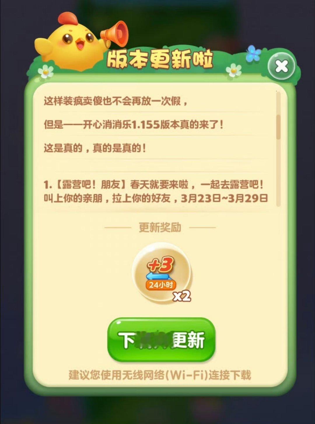 开心消消乐发错版本了啥意思?是还想再放一次假吗?是不是程序员想还没休息好,想再来