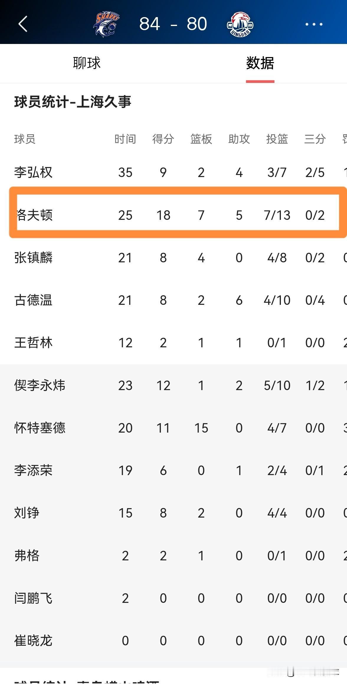 上海久事超级外援洛夫顿真是太全面了!在今天上海久事主场以84:80险胜青岛崂山啤酒的比赛中,洛夫顿再次将自己的全面性展现的淋漓尽致。 全场比赛下来,洛夫顿首发出战25分钟,投篮13中7,其中三分球2中0、罚球5中4得到18分,还有7篮板5助攻1盖帽。 这就是洛夫顿在CBA的赛场上很难被限制住的原因,因为洛夫顿实在是太全面了,他不仅能够自己得分,而且可以为身边的队友创造出好的得分机会。