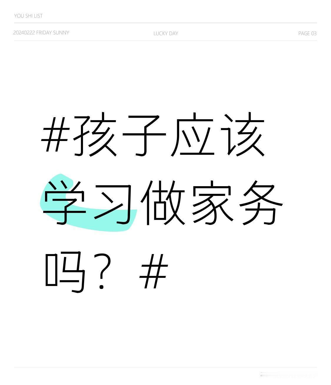孩子当然应该学习做家务!很多家长觉得孩子只要学习好就行,家务自己包办。但这其实剥夺了孩子成长的机会。 做家务是孩子学会独立的第一步。孩子迟早要独自面对生活,若从小只读书,连基本生活都无法自理,进了社会肯定手足无措。像有些大学生,考上名校却连衣服都洗不好。 而且,做家务能让孩子懂得责任。整理玩具锻炼秩序感,帮忙摘菜感受家庭责任。孩子在做家务中解决问题,能提升独立思考和解决问题的能力。两三岁孩子就能整理玩具,家长别因孩子小就不让尝试,多鼓励,让孩子在做家务中获得成就感,这才是真正的爱。