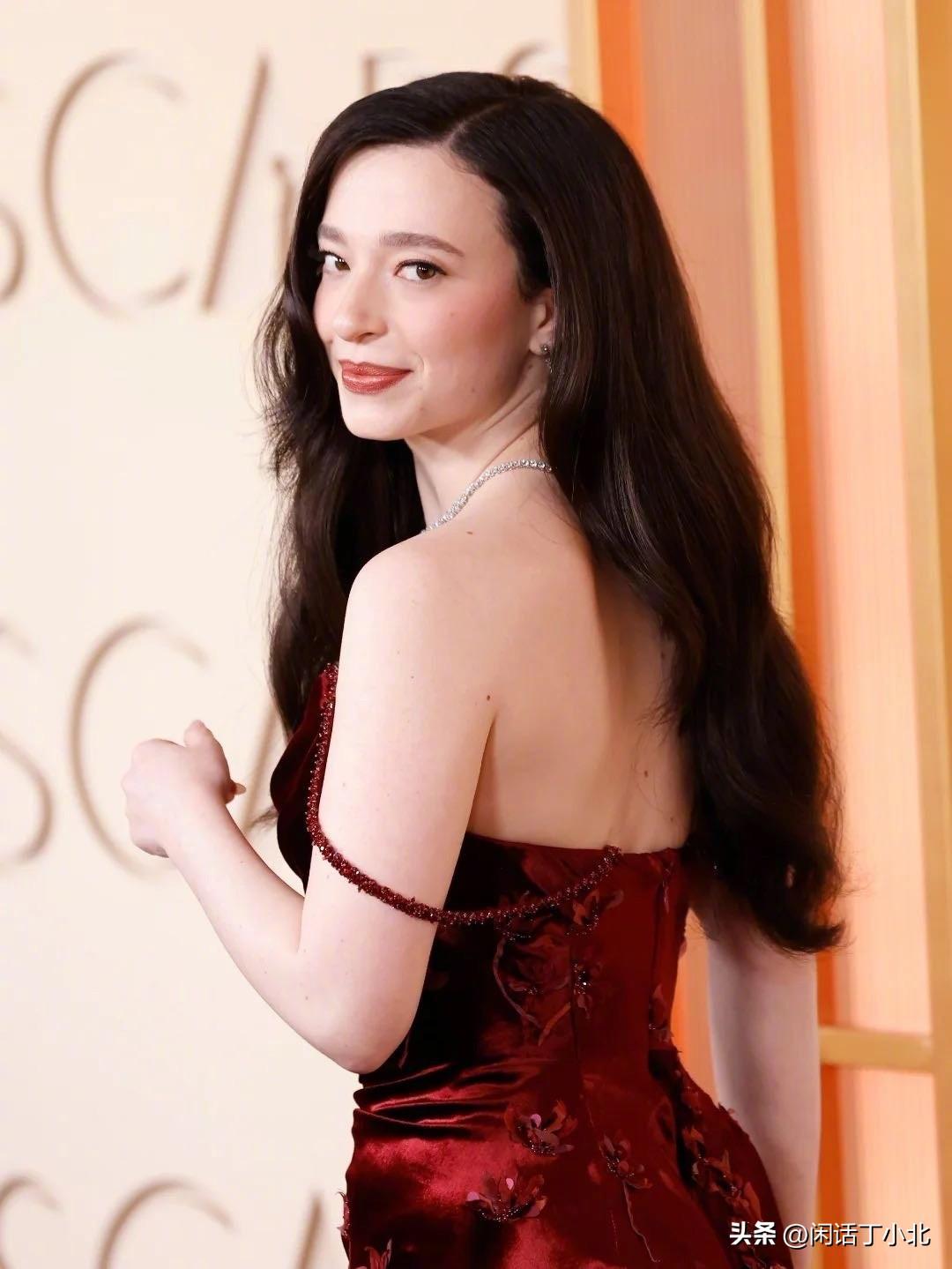 外娱资讯,Mikey Madison身穿Dior 红色定制礼服出席了第98届奥斯