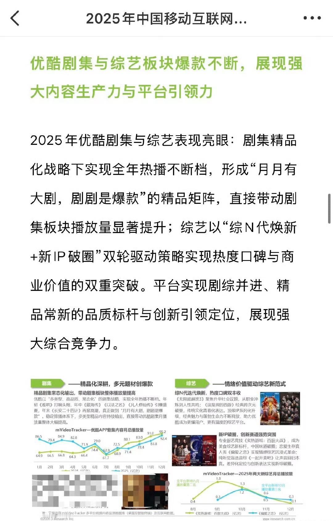优酷2025年盈利了,其中12月剧集播放量全年最高, 已知12月优酷只播了长安二