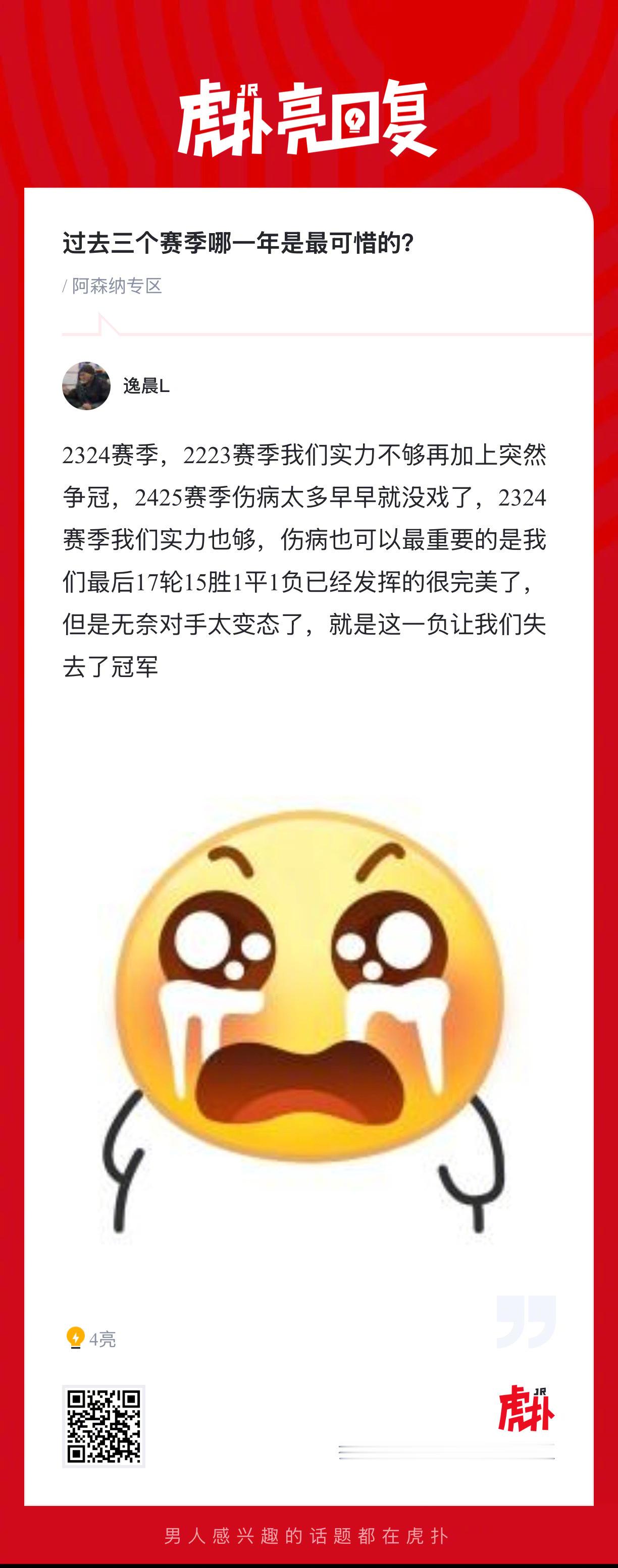 阿森纳球迷来说说,过去三个赛季迷路的哪一年是最可惜的?