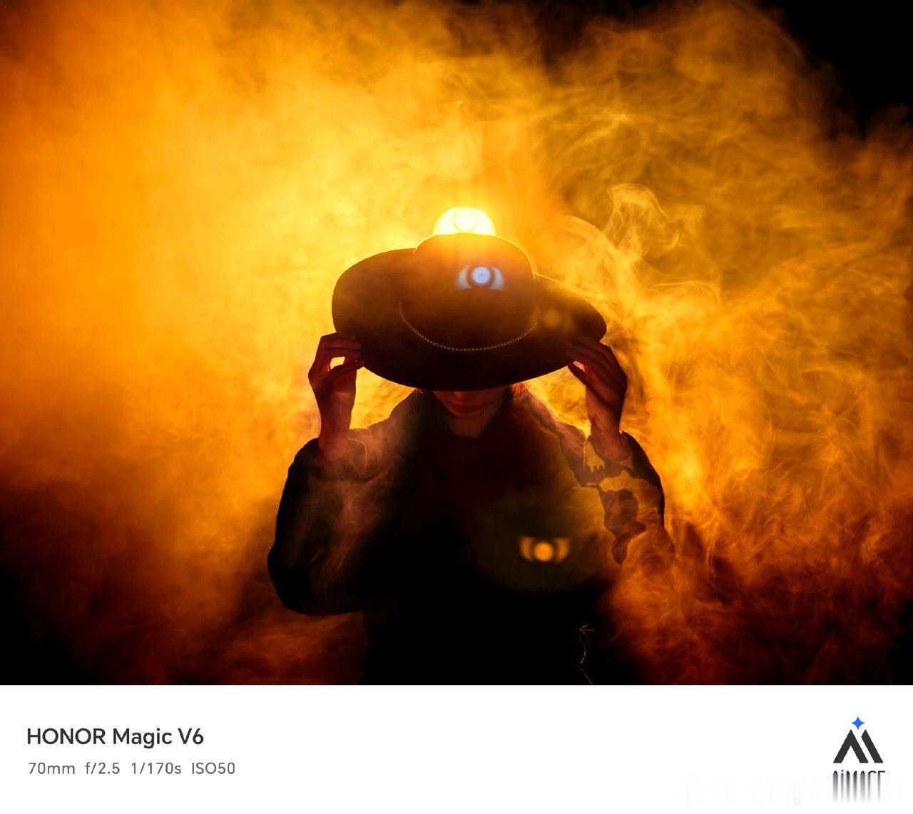 如何利用荣耀Magic V6拍摄出,氛围感十足的人像写真呢?刚刚看到荣耀首席影像工程师罗巍,分享了这款机型,利用整体采用暖黄色烟雾与逆光氛围拍摄的照片,模特的装扮居然营造出西部牛仔式的复古电影感,摄影师太会讲故事了 畅聊数码新品 数码资讯