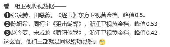 张凌赫,田曦薇《逐玉》、陈妍希,周柯宇《狙击蝴蝶》、赵今麦,宋威龙《骄阳似我》三部是同级别项目吗?
