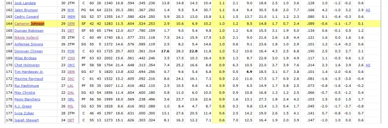 抢断率1.0%,排名第164,也是上榜球员中最倒数的水平