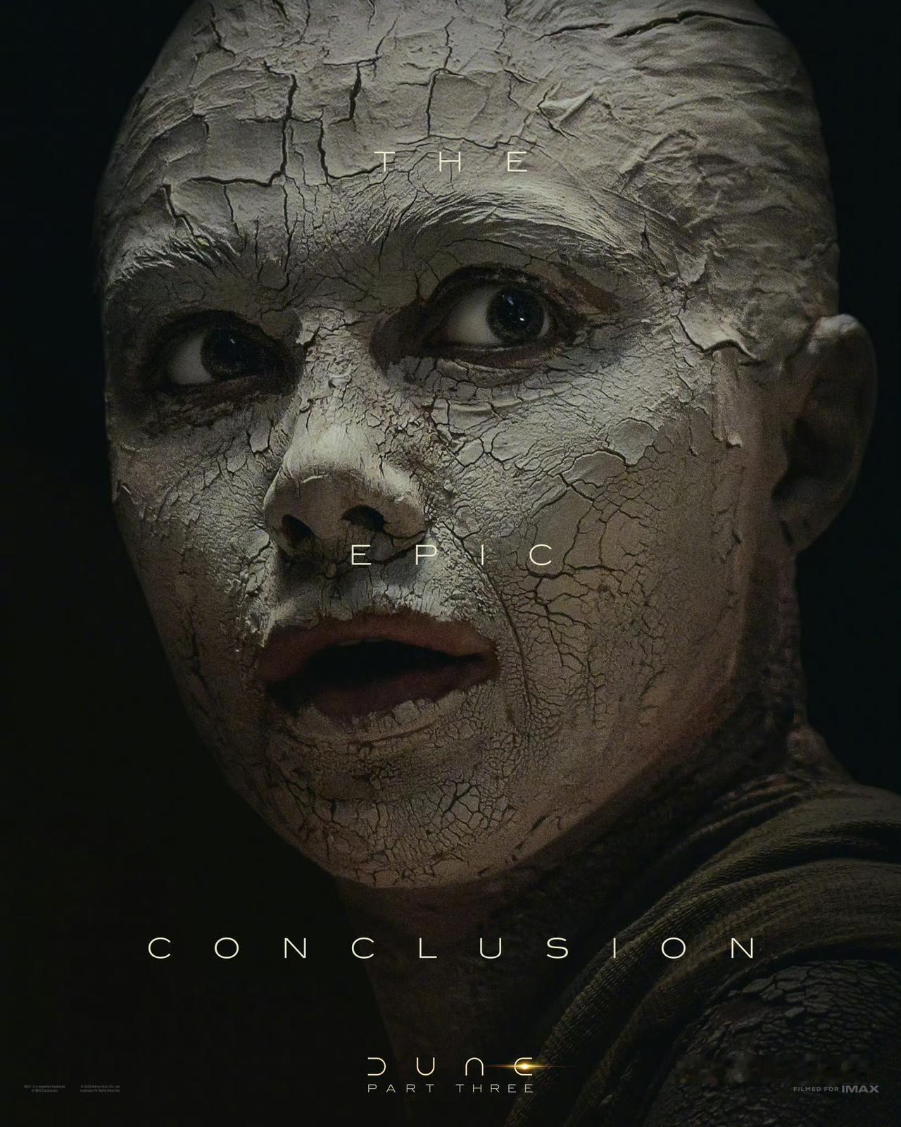 《沙丘3》角色海报,《沙丘3》是导演丹尼斯·维伦纽瓦的《沙丘》系列三部曲最终篇,将于2026年12月18日北美上映。
