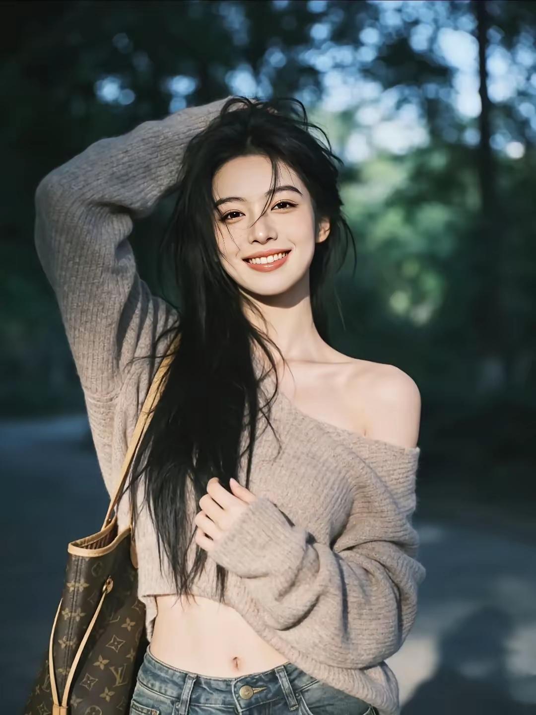 风吹长发飘,笑语动春光。