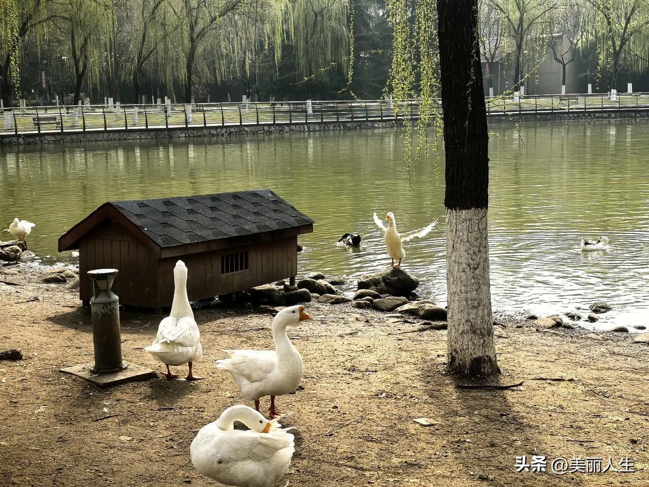 柳枝丈量春风,鸭群划开三月。湖边的嫩芽与清波,正书写着春天最分行诗。静观此景,春意满心