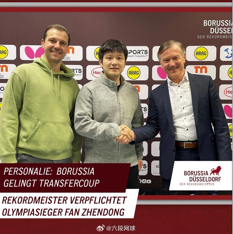 邱党直呼樊振东为新同事樊振东全新的队伍同样的雄心 杜塞尔多夫完成重磅引援,签下奥运冠军樊振东!邱党更新社媒:欢迎新同事!刚回德国就收到好消息💪🏻欢迎东哥加盟杜塞尔多夫乒乓球俱乐部!期待和你杜塞相见! 樊振东让乒乓球这项运动熠熠生辉 杭州