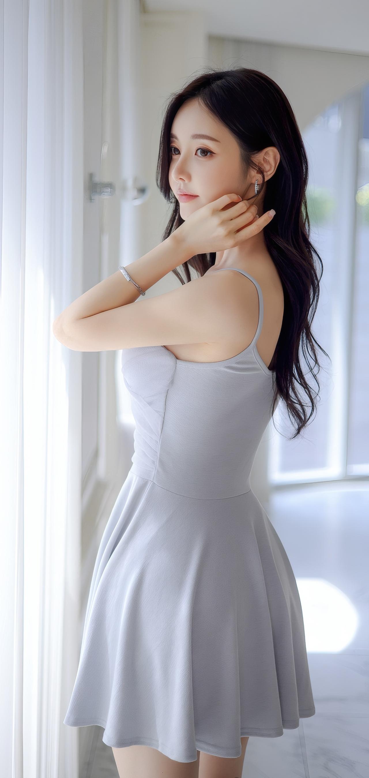 优雅灰裙,轻纱掩映,温婉动人。