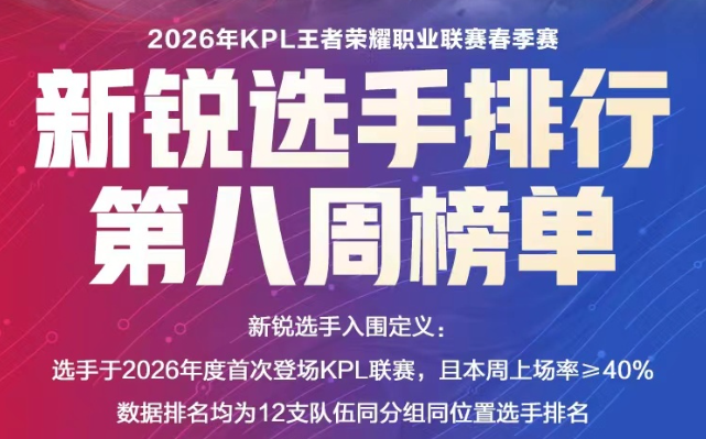 新锐选手入围定义:选手于2026年度首次登场KPL联赛,且本周上场率≥40%;